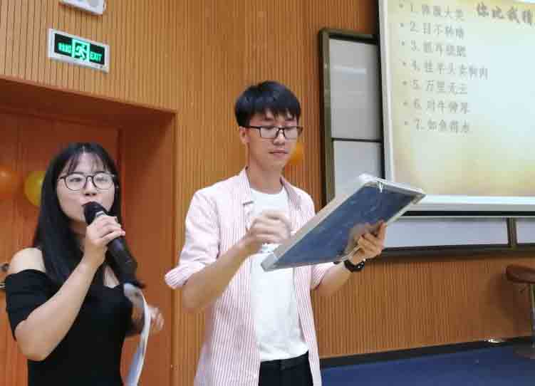 比赛现场 本次大赛共分为五轮,听写题、成语题、繁简字互换、甲骨文题、“你画我猜”。赛场上,参赛选手聚精会神,认真书写,现场观众自备纸和笔,积极参与。蔡方本先生对繁简字环节进行了点评,阐述了熟悉繁体字的重要意义,肯定了beat365平台唯一官网学生对繁体字的认知水平。