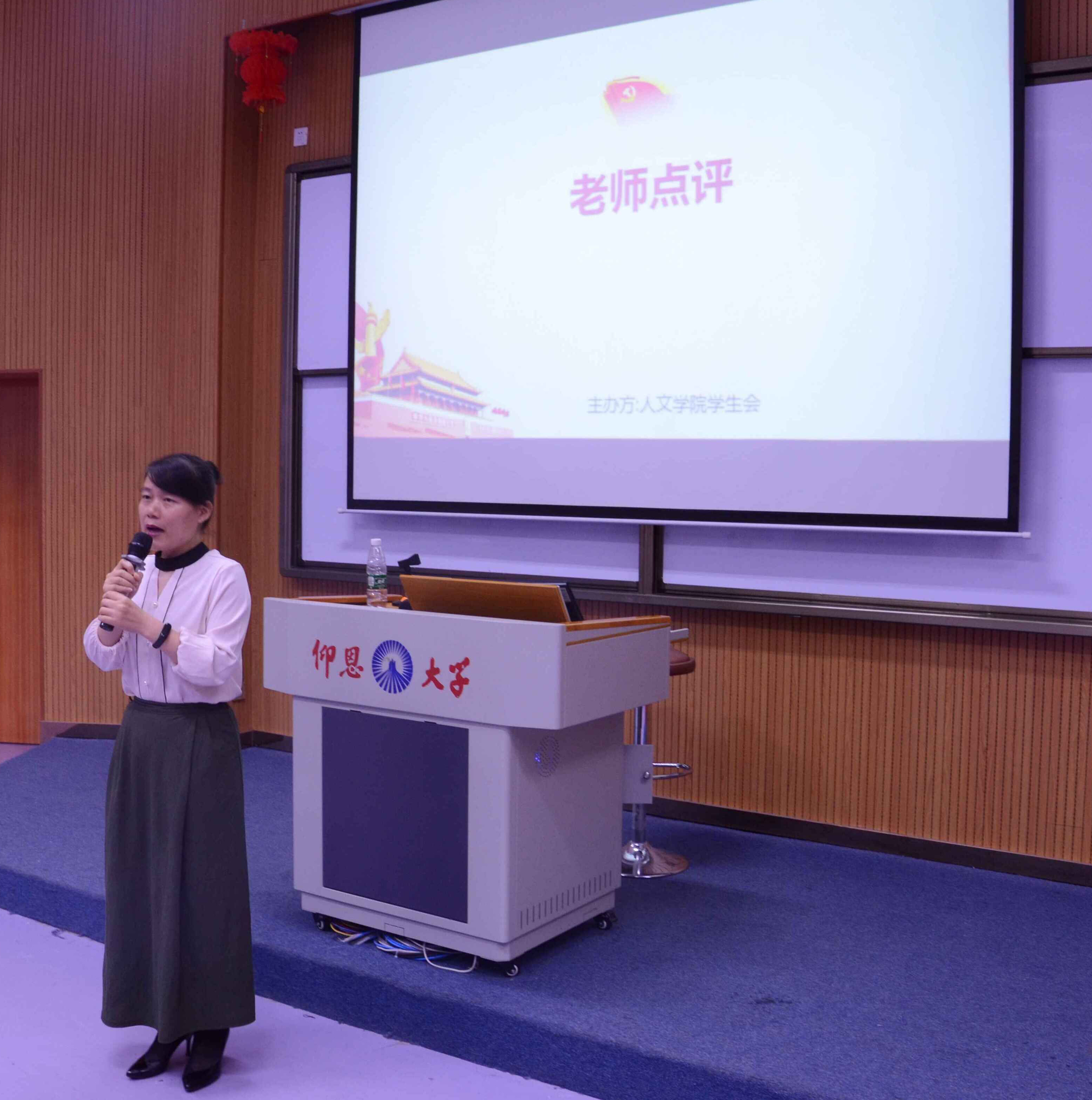 老师点评 岳秀文老师对本次比赛做了精彩的点评和总结,既肯定了同学们所选的朗诵内容能够紧扣时代主题,肯定了同学们参赛的积极性,表示只有热爱民族语言文字,才能为建设与综合国力相适应的语言文化强国提供应有的支撑,也指出了有些同学的普通话水平还需要提高,同时,建议同学们多阅读经典文化作品,理解文学作品的内涵和情感,只有这样,才能将作品演绎得更加完美。