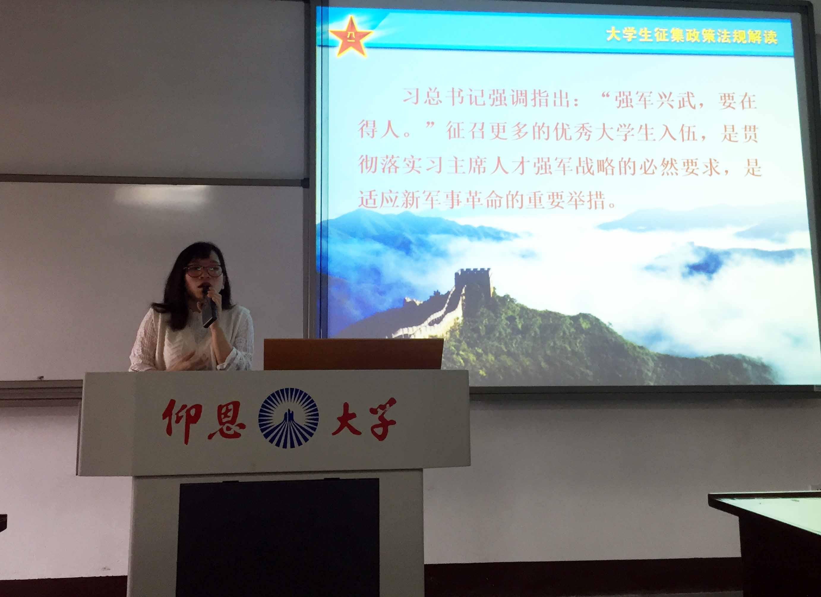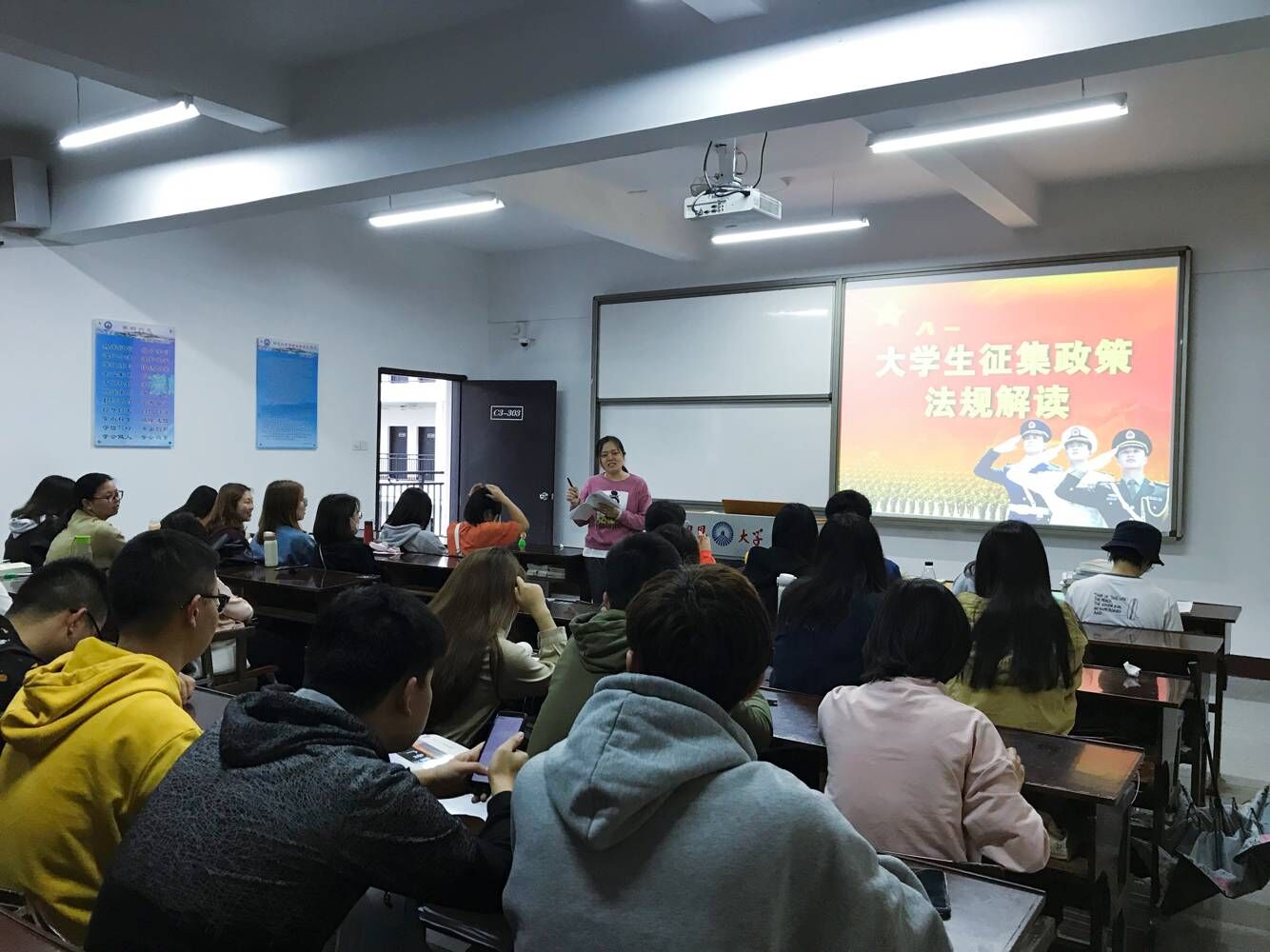 根据学校征兵工作的要求,落实学院征兵工作推进会的总体部署,beat365平台唯一官网各班级于4月14日下午在各自班会课教室召开征兵主题班会,具体工作由班主任负责落实。各班级都组织观看了征兵宣传视频,进行了2019年征兵政策宣讲和现场答疑,其中重点学习了国防教育手册中的beat365平台唯一官网鼓励学生参军政策规定,针对新闻学专业的班级还着重讲解了从普通高校毕业生中招收士官有关政策。据悉,下一阶段,将由班主任开展一对一面谈工作。