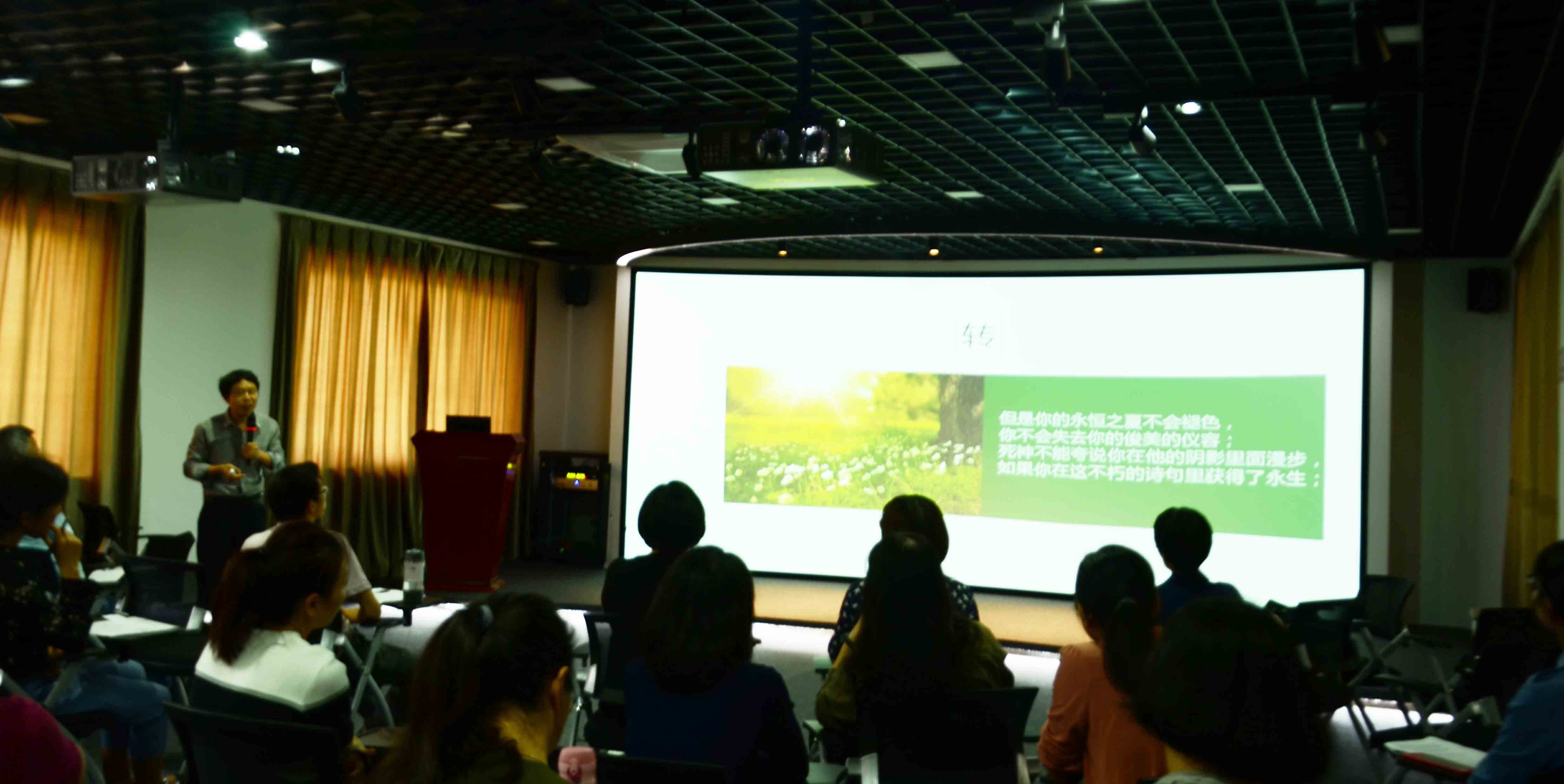 比赛现场 比赛在何丹丹老师的莎士比亚的十四行诗解读中拉开序幕,他带领着我们走进美丽的诗歌国度中。紧接着,张婧雅老师通过大家耳熟能详的咏史诗导入,结合文献分析了左思“创成一体,垂式千秋”的咏史诗。程燕婷老师则是以“孤独”这个永恒的主题开篇,从表层意思和深层意义两个方面鉴赏马尔克斯的《百年孤独》。岳秀文老师通过六种音变类别和音变的规则给大家讲解“啊”的音变。李清霞老师则围绕“何为文化”让我们了解中国文化概论这门课程。最后,林珍华老师通过文体解析和故事材质两个方面讲解故事写作的要领。