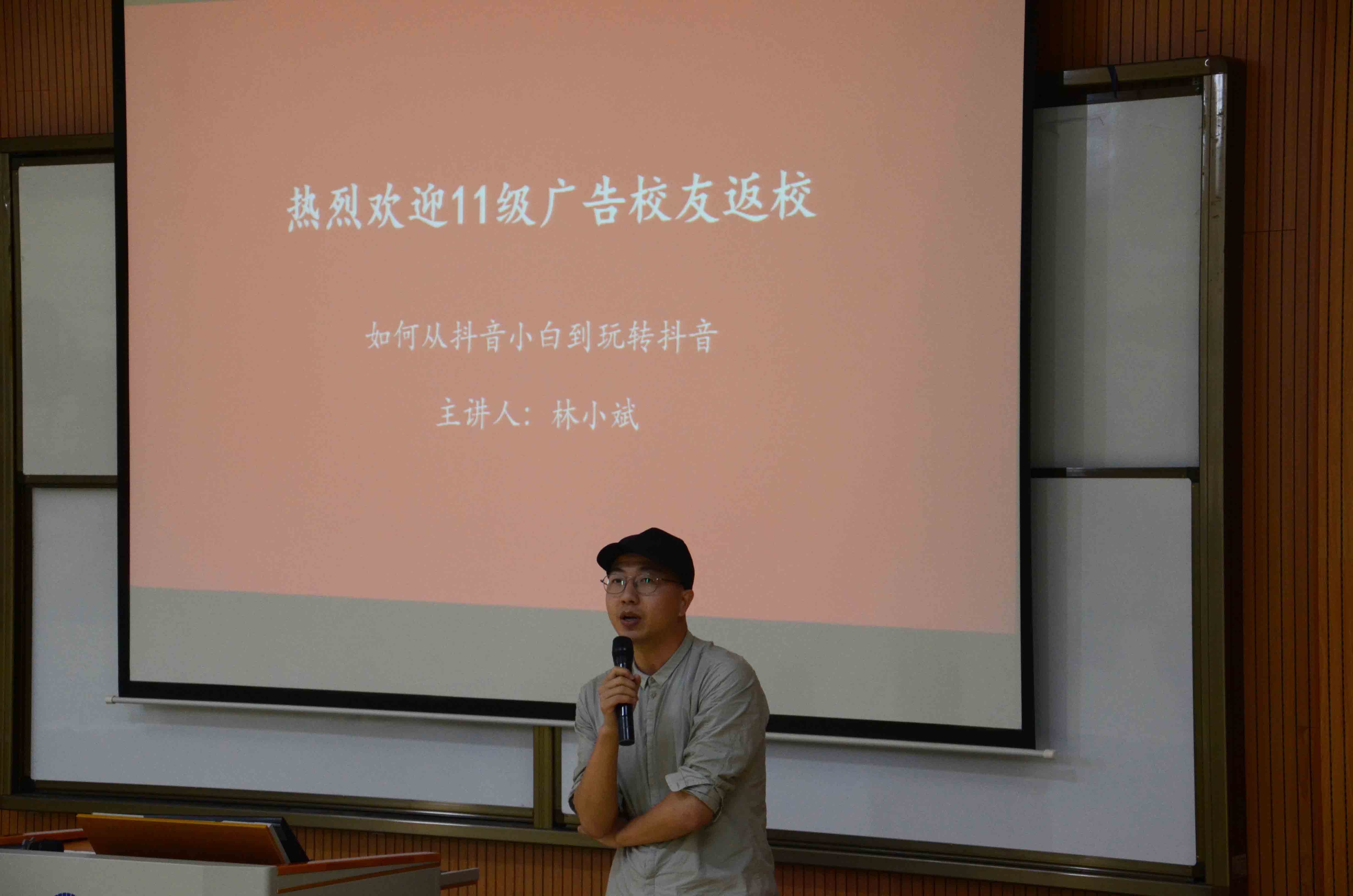 林小斌告诉学弟学妹“你的尝试,才是成功的第一步。”。以抖音为例,讲解如何做一条优秀的短视频、如何快速剪辑手机短视频,深入浅出,风趣幽默。在谈到短视频创新时,他用当下热门的抖音短视频为例,表示“模仿+改良=创新”,并针对短视频创作提出几点中肯的建议:一是找到适合自己的定位;二是学会如何做短视频的基础内容;三、掌握短视频成为爆款的技巧。