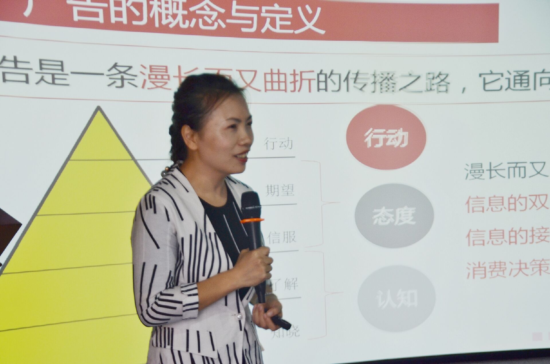 比赛现场 比赛分教辅组和专任教师组进行, 广告系6位专任青年教师紧紧围绕“广告的内涵”这一基本理论讲述。王秋燕老师 以“广告的变与不变”为切入点阐释广告的基本内涵,将广告前沿知识融入教学,讲述广告的“四变”和“一不变”;刘巧云老师通过详细讲述“科学提炼” 在广告内容生产中的位置,将学科前沿知识融入教学,逐步引导学生清楚认知广告核心能力;刘可为老师就广告活动的营销和传播本质,阐释自己对广告理解的三个观点;陆亚男老师讲述了如何透过广告看到广告所传达的价值观等方面的内容;侯雨君、程佳薇老师均结合经典广告案例讲述了什么是广告。李琦老师讲授了从拉片说起的影视广告非编知识;谢日菲老师结合移动互联网的大数据讲述营销传播的新变化;杜永兴老师展开了数据储存方面相关知识的讲解。相同的主题,不同的教学设计,不同的教学风格,台上全力投入,台下聚精会神,积极互动,为大家展现了不同的教学风采。