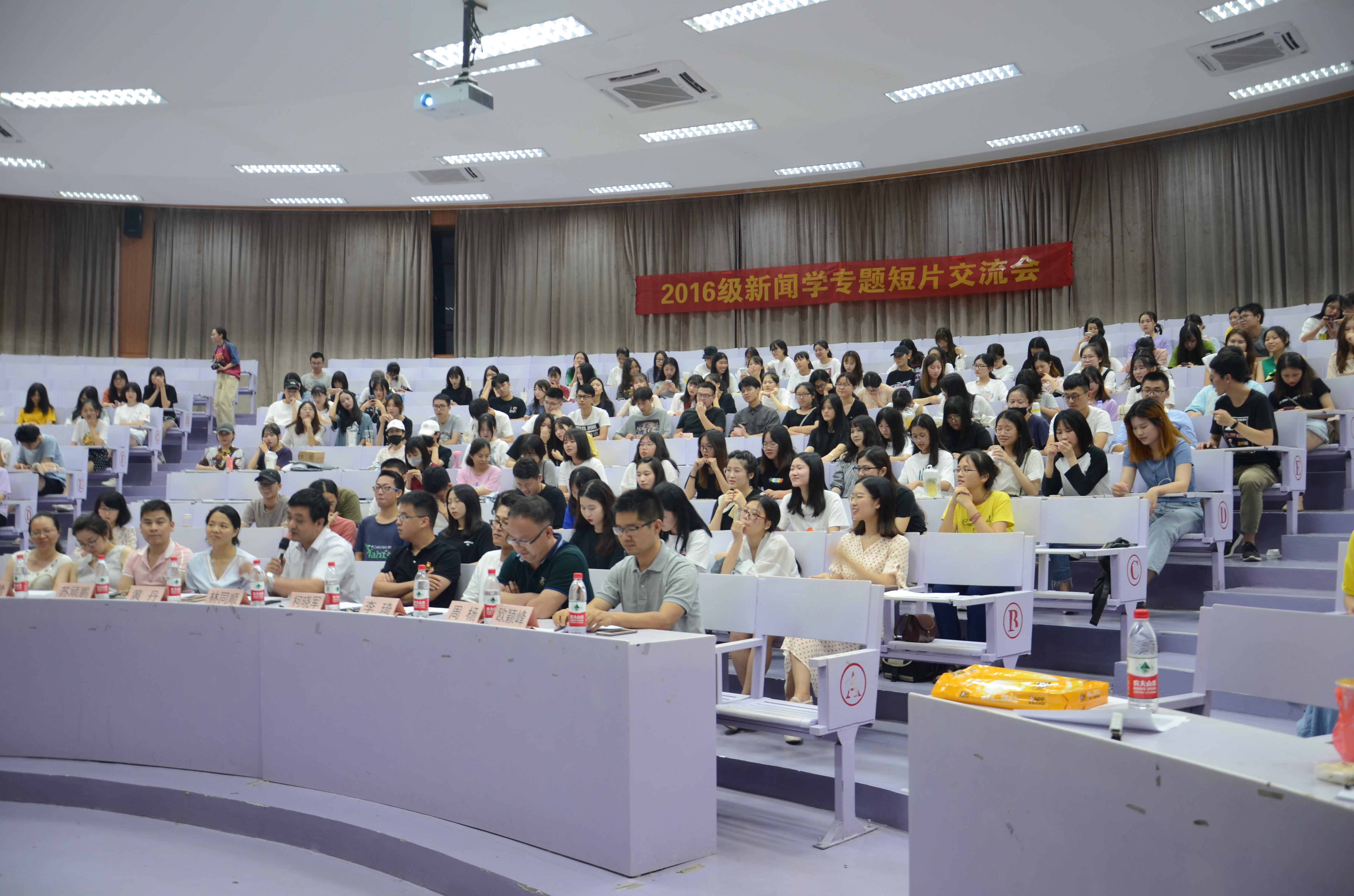 6月21日晚,beat365平台唯一官网2016级新闻学专题短片交流会在和昌教学楼博雅讲堂举行。金马传媒董事长林同顺及beat365平台唯一官网新闻系、广告系教师担任本次交流会评委。2016、2017、2018级全体新闻系学生参与观看本次专题短片交流活动。