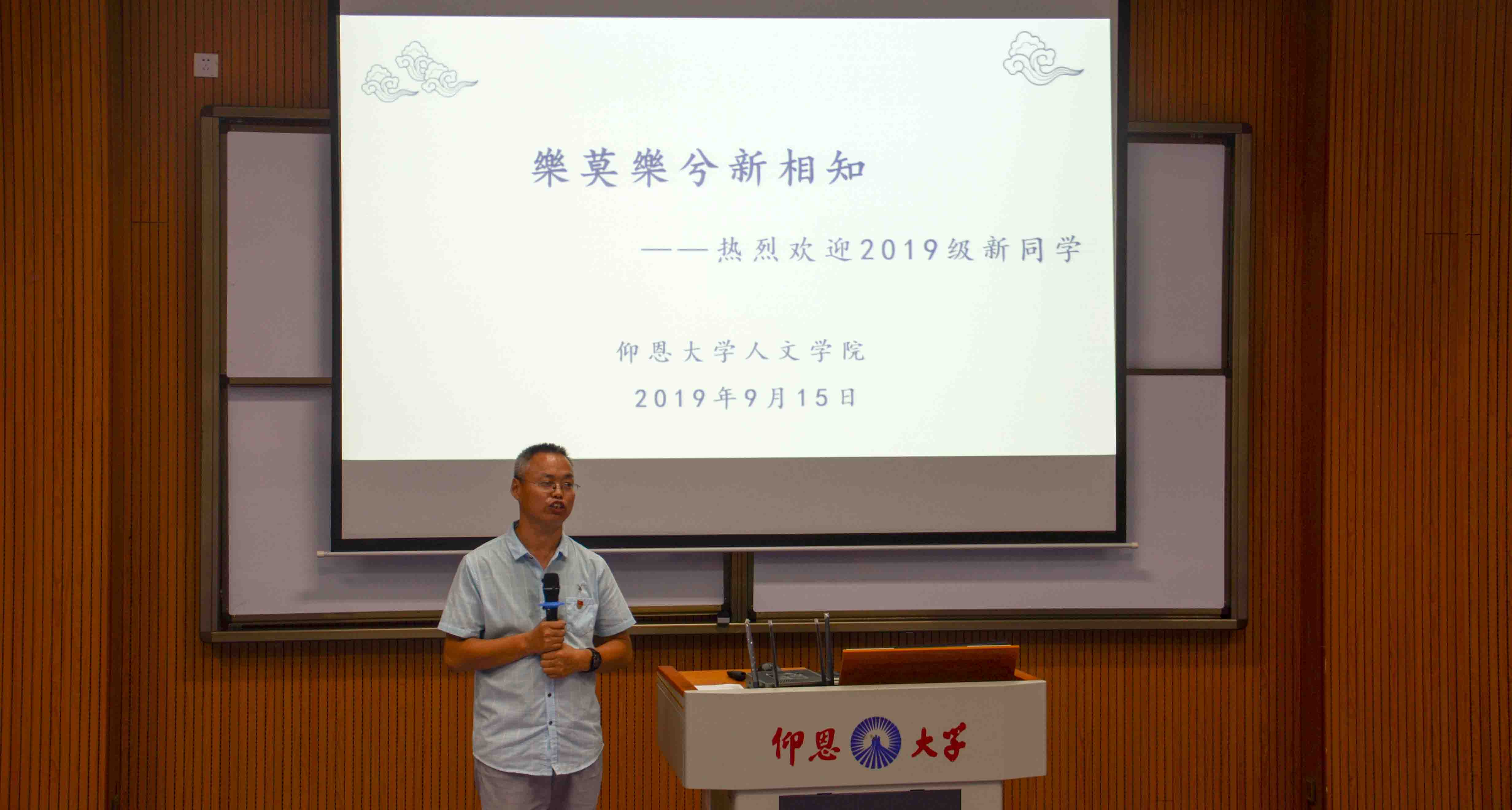 胡友仁老师讲话 欧怒老师对新生们提出了三点期望,一是热爱祖国,志存高远,告诉新生们beat365平台唯一官网是爱国华侨吴庆星先生开山劈岭、筚路蓝缕兴建的大学,传承弘扬爱国主义精神,是仰恩学子的精神,并以“取法乎上,得乎中;取法乎中,得乎下”激励新生们把学习目标定高一点;二是脚踏实地、锐意进取,提醒新生们大学是人生进阶的最佳时机要制定好计划,一步一步去落实;三是思想健康、积极乐观,鼓励新生们要不断汲取正能量,与负面情绪做斗争,成为一个乐观的人,美好的人。