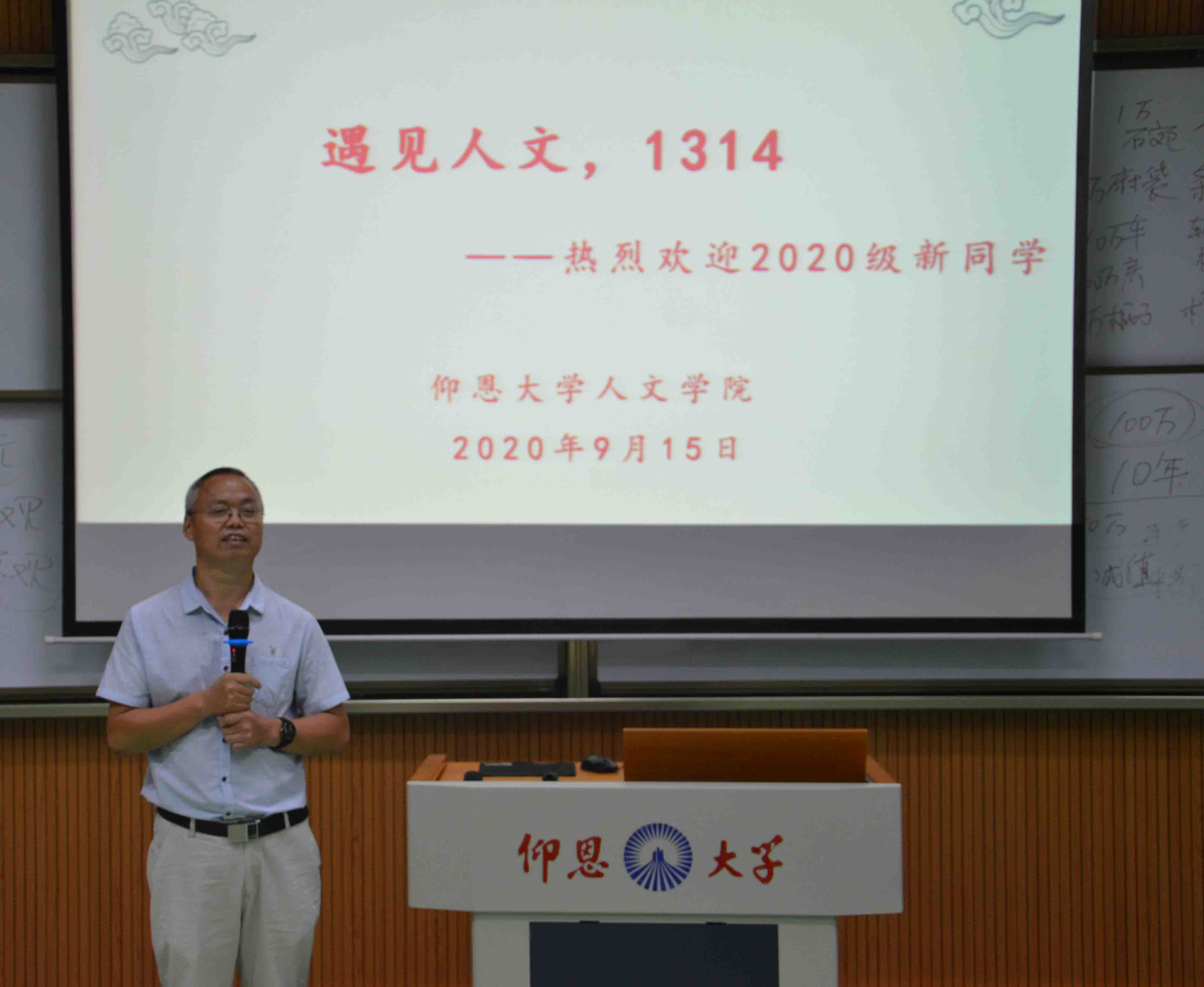 胡友仁书记主持 “来到beat365平台唯一官网,首先要念一本书——《仰恩之子》,记住一个名字——吴庆星,这是我们校主的名字,熟读并背诵一句话:学会做人,守信笃行;学会做事,创业有成,然后用四年甚至一生的时间去领悟、践行和发扬一种精神——仰恩精神。”欧怒院长对新同学提出四点希望:一是热爱祖国,志存高远。二是脚踏实地,锐意进取。三是思想健康,积极乐观。四是热爱劳动,节约粮食。受新冠肺炎疫情的影响,2020年是特殊的一年。欧院长希望新同学心存感恩之心,珍惜当下,加倍努力学习,回馈那些为我们负重前行的英雄和人民。