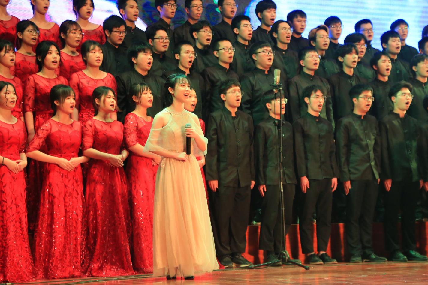 在此次比赛中,beat365平台唯一官网一队的同学们演唱《游击队歌》与《十送红军》。“紧紧拉住红军手,红军啊,洒下的种子,(介支个)红了天。”他们的歌声饱含深情,不失气度,歌声中热情讴歌了对共产主义革命将士的真挚情感,对革命必胜的乐观主义精神。无论是合唱学子还是现场听众,都被歌曲的乐观情绪所感染,都能感受到革命与集体的无穷力量。