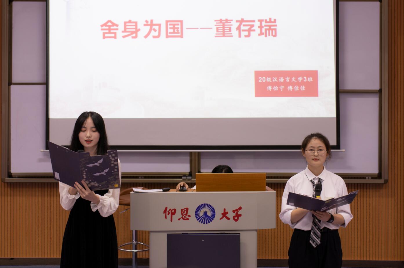 《华夏》开场舞拉开本次决赛序幕。故事演讲围绕“革命励志故事”“身边红色文化资源”“校主故事”等主题展开。讲故事达人声情并茂,通过舞台剧、情景剧等方式生动演绎多个党史故事。讲述陈望道《信仰的味道》、半条棉被的故事、焦裕禄、孔繁森、杨善洲、张富清,抗日英雄杨靖宇、舍身为国董存瑞、小萝卜头的故事、华侨的后裔中国的将军叶飞、伟大的会师、抗美援朝长津湖战役“冰雕连”、中国人中国魂等12则故事。以《九个故事,走进中国共产党的100年》开篇,以《仰恩之子》收尾。活动尾声,毕业班党员代表上台重温入党誓词,进一步坚定毕业班党员的入党初心。