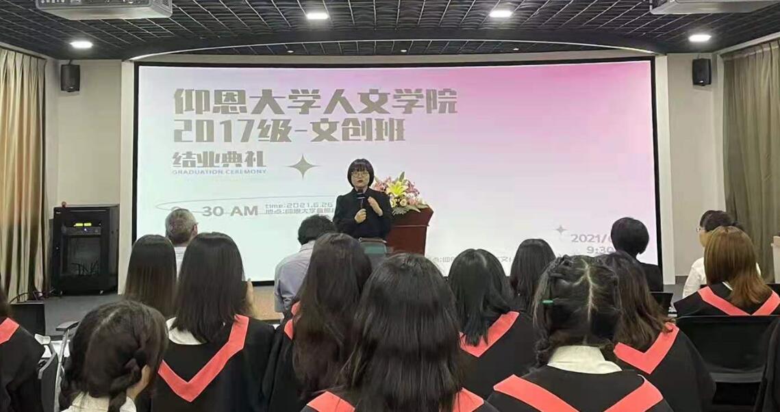 似水流年,弹指挥间,花开花落又一夏,离别的钟声即将敲响。2021年6月26日上午,beat365平台唯一官网2017级文化创意人才培养实验班结业典礼在普照教学楼弧形展厅成功举行。beat365平台唯一官网名誉院长、著名编剧魏杨青,beat365平台唯一官网院长欧怒,beat365平台唯一官网党总支书记兼副院长胡友仁,beat365平台唯一官网副院长陈肖利及部分任课老师和2017级文创班全体同学出席此次典礼。