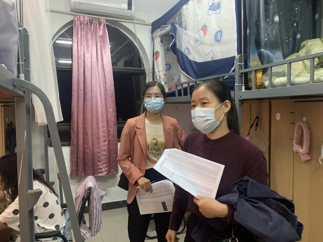 岳秀文老师及全体辅导员深入各个宿舍进行大功率电器的突击检查,并进行安全知识的宣传,提高同学们宿舍的安全意识。此次检查,重点检查了学生宿舍是否有使用违规大功率电器和寝室中是否有乱接电线违规现象,且在现场对电器安全隐患问题,进行了详细的落实,并提出整改意见。在检查过程中,岳秀文老师及辅导员们和学生展开进行亲切交流,认真询问学生学习、生活情况,关注学生身体状况与心理变化,做好学生思想工作,叮嘱同学们在学校要学会照顾好自己,同时从谈话中了解了恢复线下教学以来所面对的问题。面对大一新生对于新环境的适应和高年级学生目前的职业规划情况,老师们分别与其深入进行交谈,提出相对应的建议,努力解决学生的困惑,使同学们能够更好地迎接和面对接下来的学习生活。