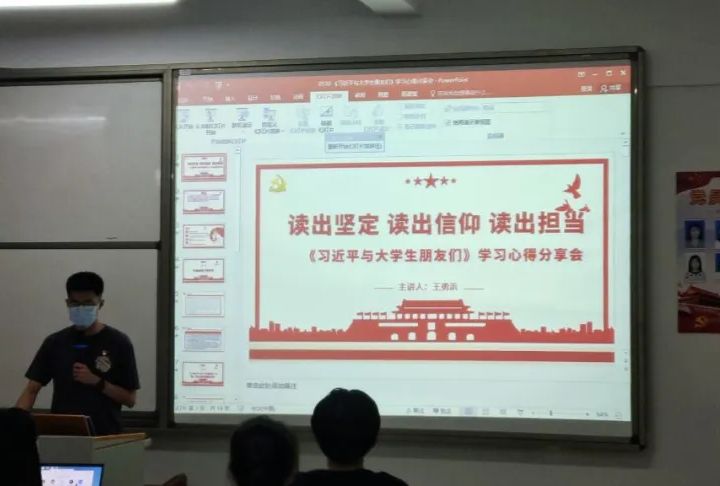 2022年5月30日,新闻传播学系学生党支部书记王勇浜同志于仰恩楼C1-303以“读出坚定,读出信仰,读出担当”为主题开展了的学习心得分享会,新闻传播学系学生党支部全体党员同志参加本次分享会。