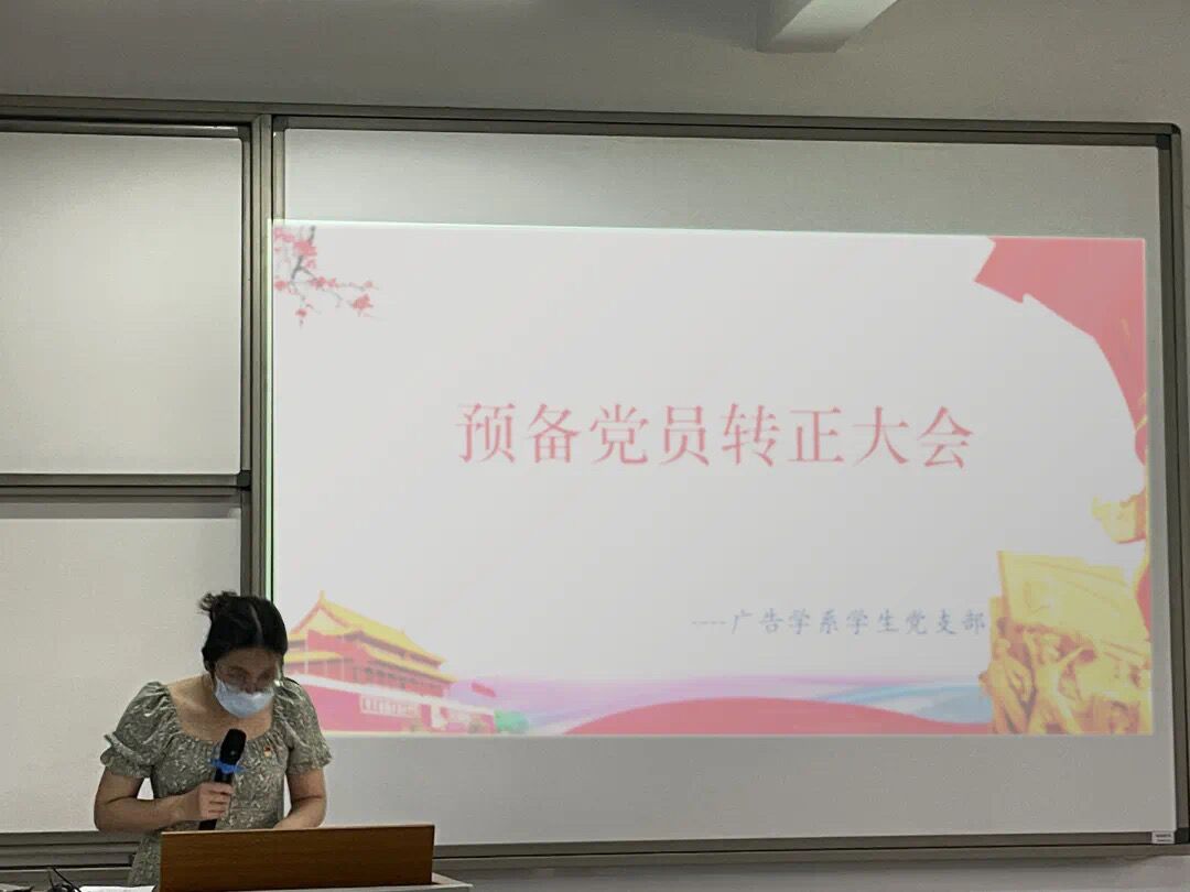 6月1日14:30,广告学系学生党支部在仰恩楼B1-207召开预备党员接收大会暨预备党员转正大会。支部书记戴舒容同志主持本次会议。