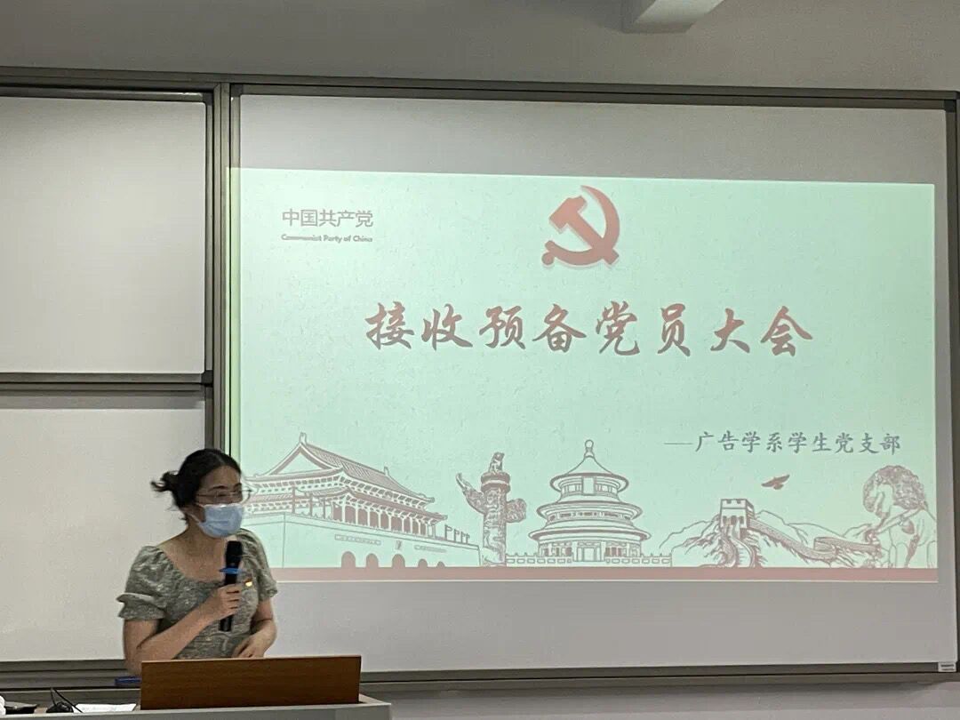 6月1日14:30,广告学系学生党支部在仰恩楼B1-207召开预备党员接收大会暨预备党员转正大会。支部书记戴舒容同志主持本次会议。