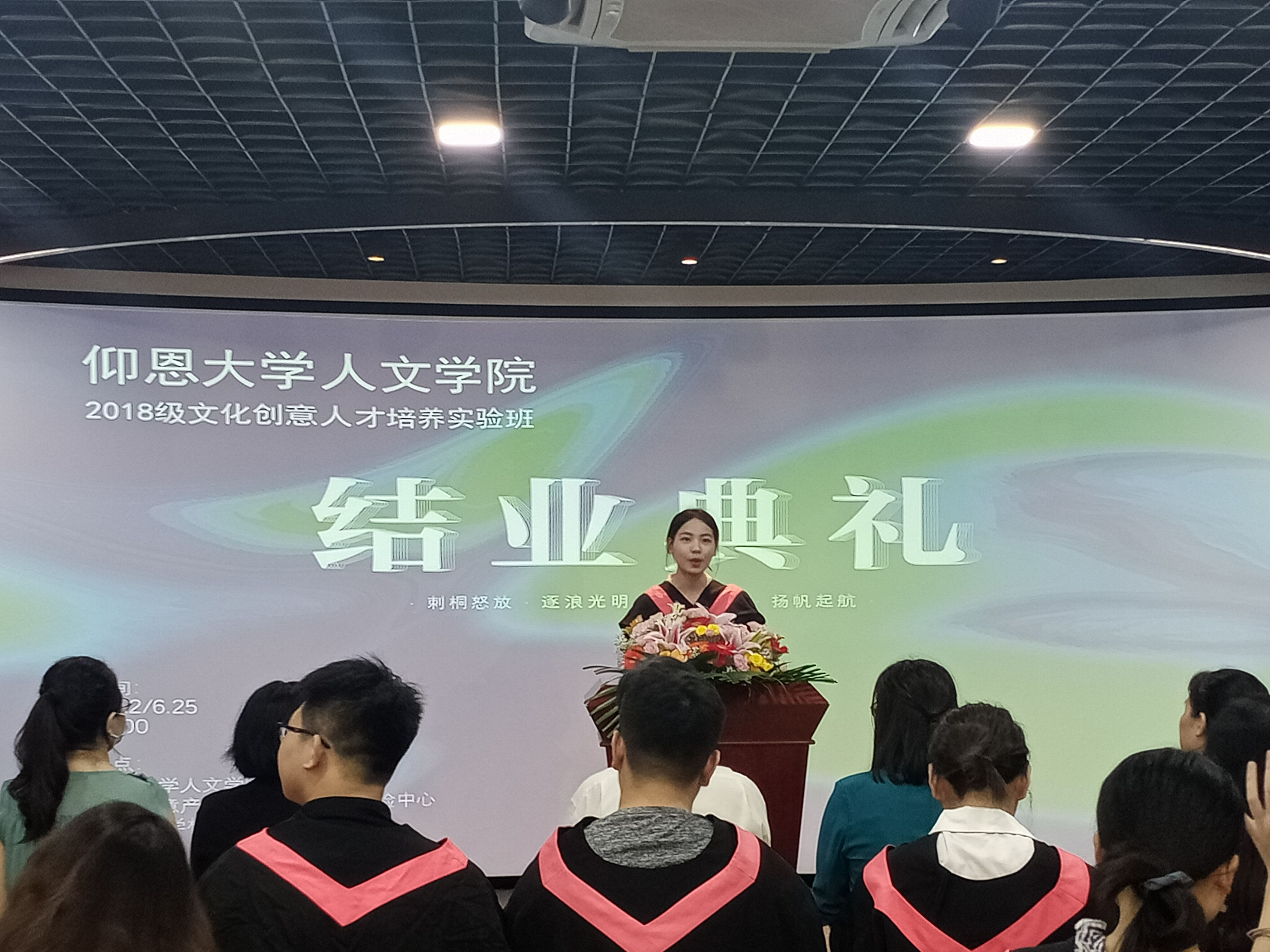 紧接着是2018级文创班三位代表发表讲话,她们表示加入文创班是她们大学四年中最有意义的事情,在这里她们不仅认识了新朋友,还提高了专业竞争力,开阔了产业眼界,成就了不一样的自己。
