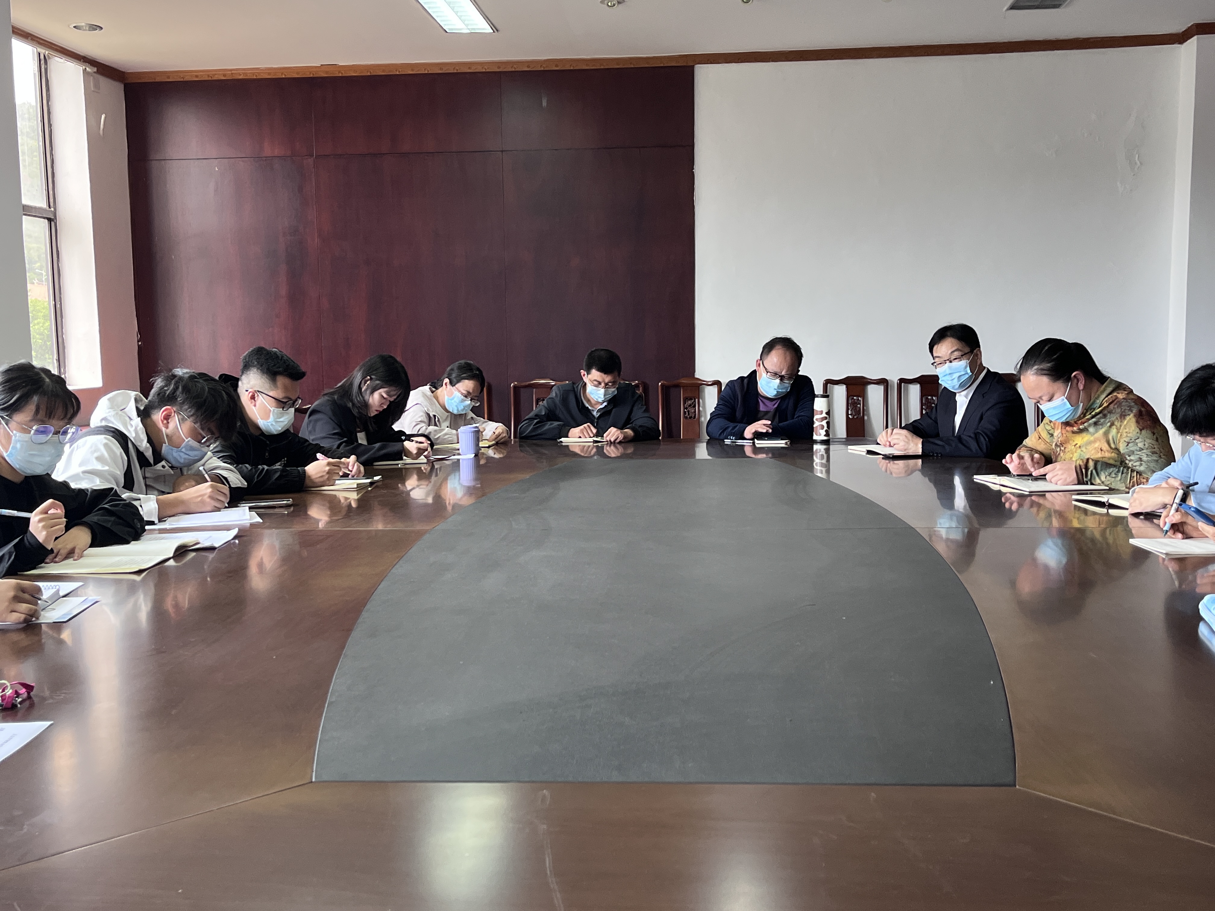 11月2日下午,beat365平台唯一官网党总支理论学习中心组在新区行政楼会议室集中理论学习,专题传达学习党的二十大精神。党总支书记岳秀文主持会议并讲话,理论学习中心组全体成员参加会议。