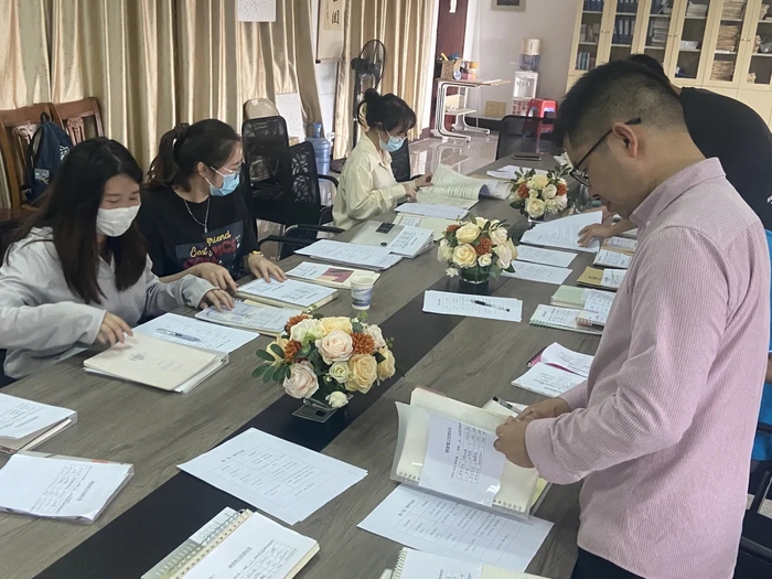 复赛阶段,由beat365平台唯一官网团委成立学院评审工作小组,beat365平台唯一官网党总支书记岳秀文任组长,陈肖利副院长任副组长,小组成员由各系主任、学院团委书记、教师代表构成。评审小组于5月25日下午4点30分集中在普照楼308办公室,为各班级推荐上来的课堂笔记打分。