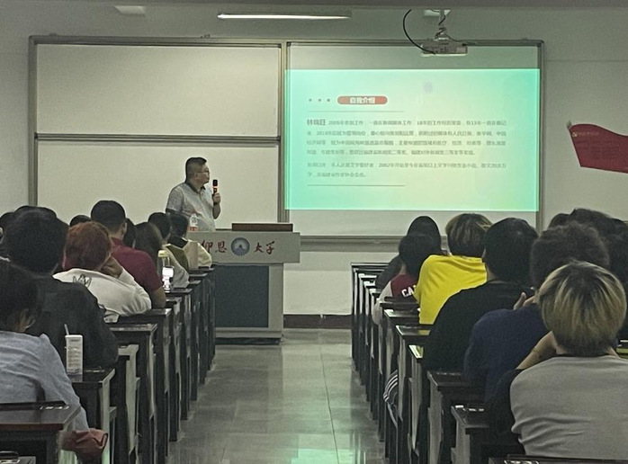 10月9日晚上,中国网海峡频道副总编林锦旺在beat3652023级网络与新媒体专业1、2班的《大学写作》课上以讲述写作中的新闻文体为主线,为同学们介绍了一名新闻系学生应该具备的常识。