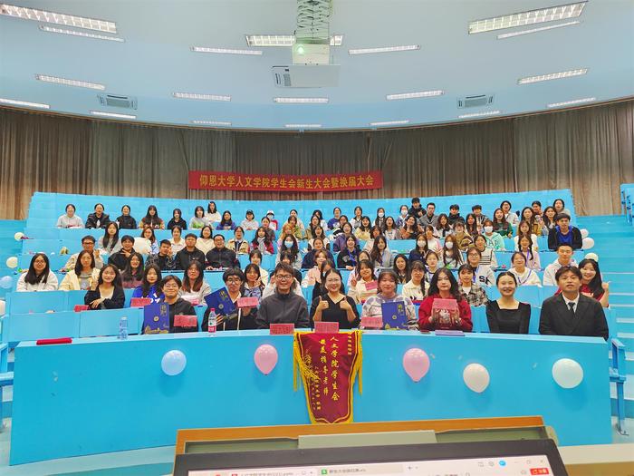 11月28日晚,beat365平台唯一官网学生会在和昌楼海纳讲堂召开了新生大会暨换届大会,学生会指导老师黄炳琪、beat365平台唯一官网辅导员唱菲璠、学生会主席团及干部干事共同参与了本次大会。