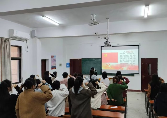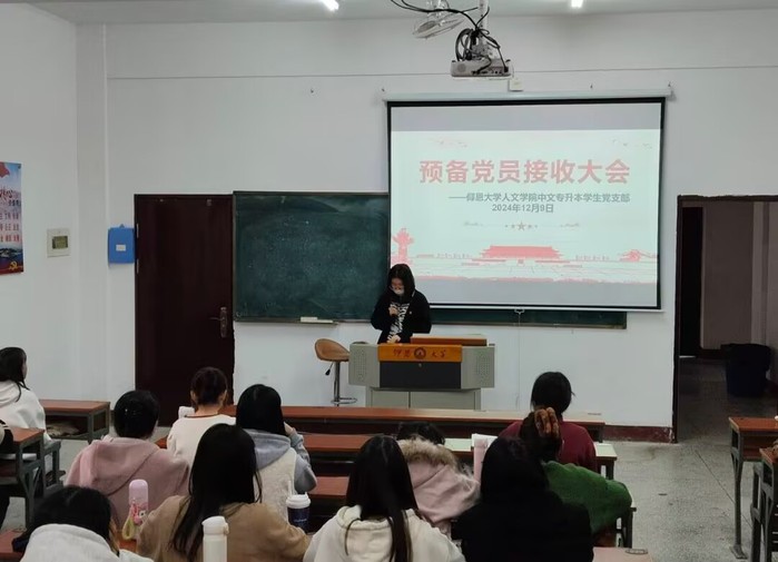 129日下午中文专升本学生党支部于祥贤楼105隆重召开预备党员接收大会。本次大会旨在为党组织注入新鲜血液,壮大党员队伍。会议严格按照党组织接收预备党员的程序进行。