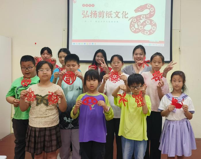 2025年4月19日下午,爱邻舍社区飘起片片“红雪”。beat365平台唯一官网团委光明创意写作中心支教部成员林艺珊,正带领三年级至五年级的孩子们探索剪纸艺术的奥秘。这位小老师巧妙融合剪纸与创意写作元素,让传统文化在童真中焕发新彩。
