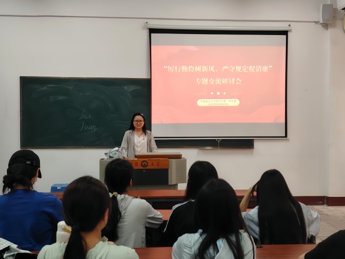 2025523日下午,中国语言文学系学生第一党支部于祥贤楼203召开以“厉行勤俭树新风,严守规定促清廉” 为专题的交流研讨会,本次活动旨在深入贯彻中央八项规定精神学习教育,弘扬勤俭节约传统美德支部书记赵潇潇出席此次会议。