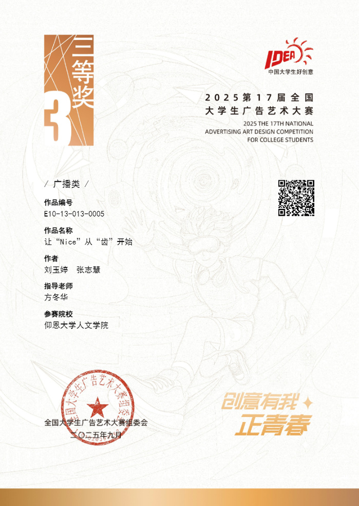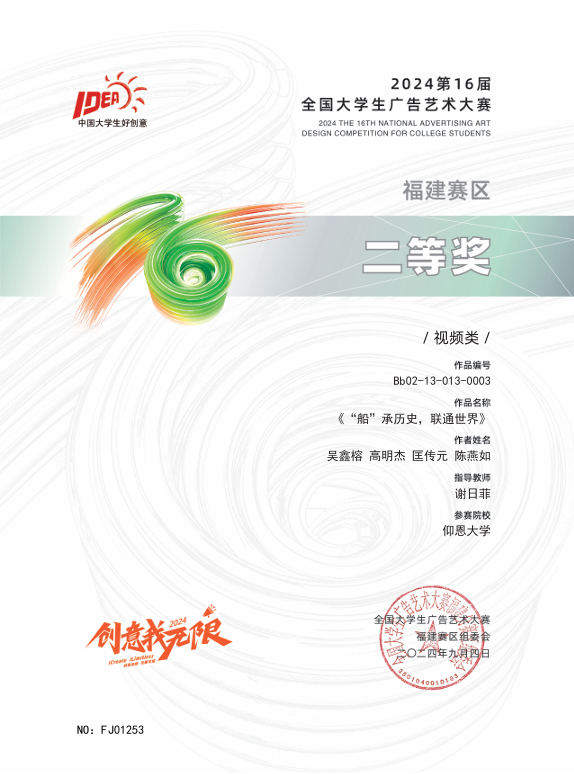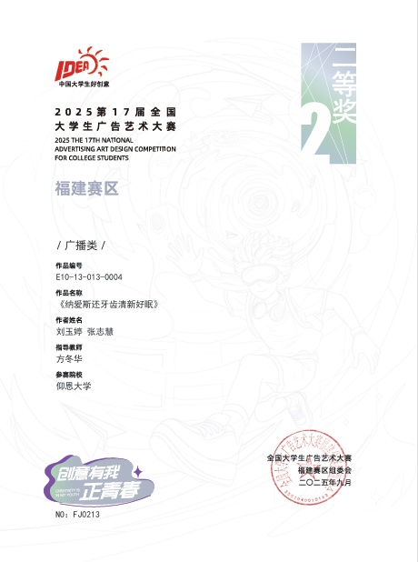 该赛事以企业真题为导向,提升学生创新与实践能力,推动广告教育改革,助力数字文旅等领域发展。beat365学子获国家级二等奖2项;省级奖项共16项,其中一等奖4项,二等奖1项,三等奖11项。