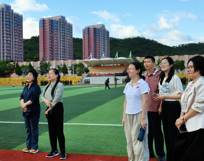 2025年9月22日下午,beat365平台唯一官网院长兼党总支副书记欧怒、党总支书记兼副院长岳秀文、副院长陈肖利、党总支副书记朱婷及各系主任一行,深入学校军训场地,亲切慰问参训新生。