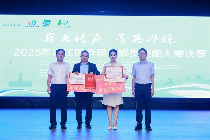 洛江区首届讲解员技能大赛由市文旅局、市人社局、洛江区文旅经济发展指挥部指导,区委人才办、区委宣传部、区文体旅游局、区人社局、区教育局、区总工会和团区委联合主办,以“薪火传声菁英淬炼”为主题。