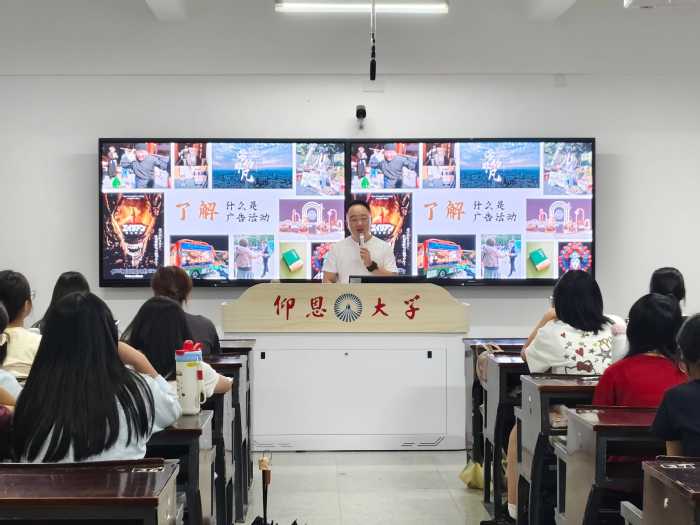 最后,陈炜老师结合我校“学会做人,守信笃行,学会做事,创业有成”的校训,鼓励同学们做一个积极向上的“仰恩广告人”。