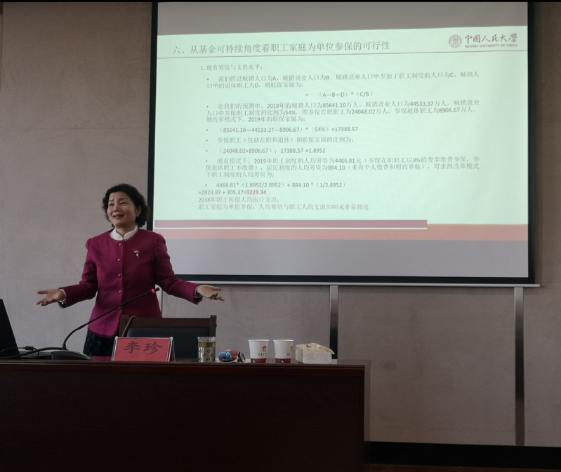 11月16日上午,应公共管理学院邀请,中国人民大学李珍教授到公共管理学院进行了题为“中国医疗保障制度发展展望”的学术报告。学院公共管理系、法学系部分教师及学院全体一年级研究生聆听了报告,此次报告是作为研究生实践培养环节的一个部分。报告会吕红副院长主持。