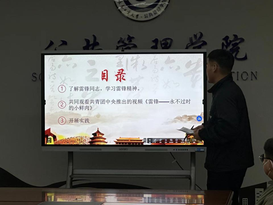 雷锋精神历久弥新,永不过时。活动开始,由骆虹柏同志带领全体党员重温雷锋故事,汲取榜样力量。在“雷锋”精神故事分享环节,李禄皓同志用朴实的语言和真挚的情感讲述着雷锋故事,并以周边人物的鲜活故事为例,用他们的真实事迹感动着身边的人,分享自己对新时代雷锋精神的感悟。虽然雷锋精神历经60年的岁月洗礼,但仍然代代传承,永不过时。公共管理学院学生党支部也将继续通过组织学习实践、分享感悟等有效形式,让学雷锋活动融入日常、化作经常。