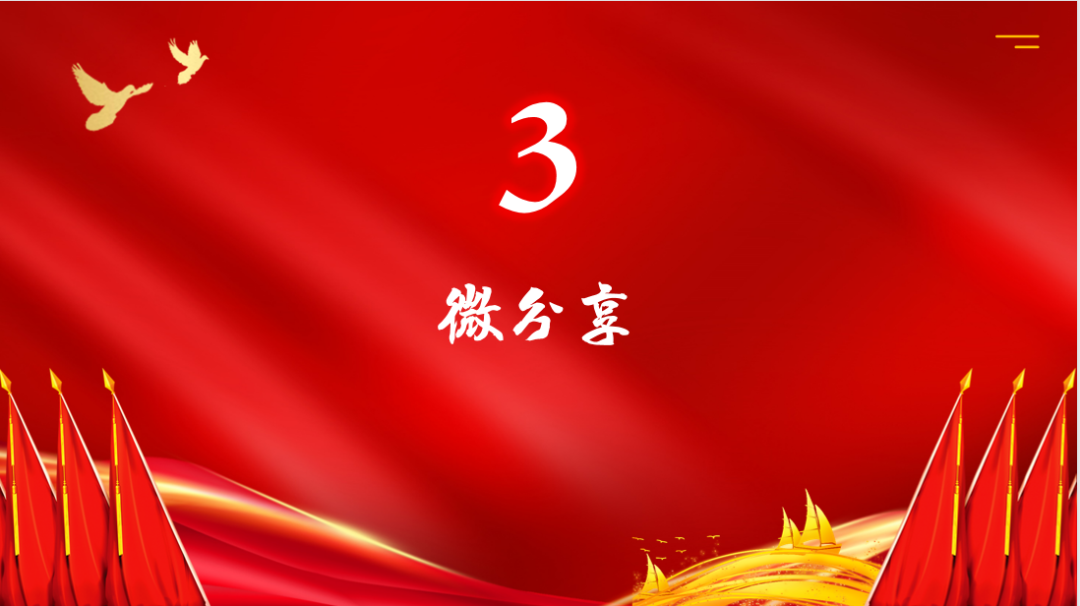 “四微”学用活动,即“微党课、微朗读、微故事、微分享”。在本次党日活动中,“四微”学用活动与党史学习教育有机融合,共同教育引导全体党员同志学史明理、学史增信、学史崇德、学史力行。