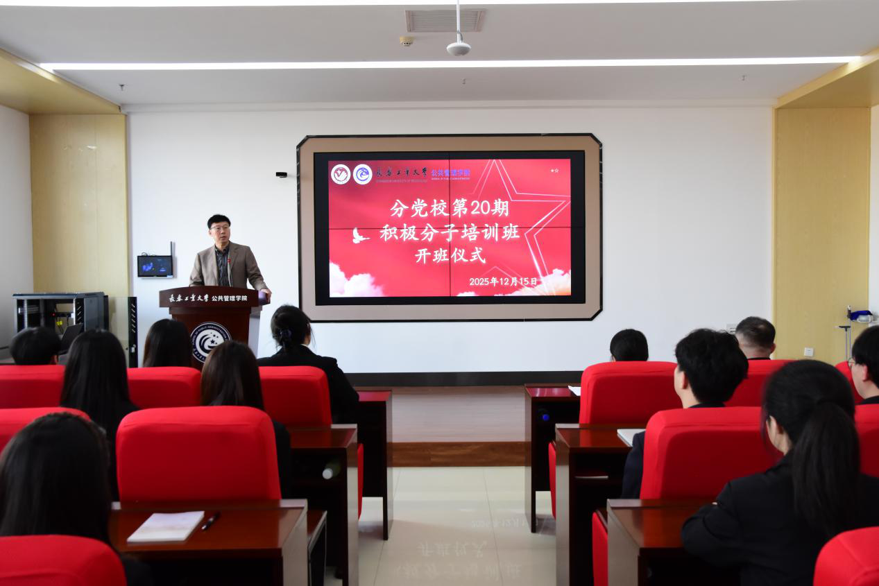 学院党委书记于洪致辞,他深刻阐明了入党积极分子培训的重要意义与现实紧迫性。他指出,当前国内外形势复杂多变、风险挑战交织,加强党员队伍建设、提升党员政治素质与综合能力,是新时代党的建设核心任务,更是党带领人民应对风险、推动事业发展的重要保障。他勉励全体入党积极分子,要倍加珍惜此次培训契机,以高度政治自觉投入学习,系统研读党的创新理论、百年党史与党章党规,在理论滋养中锤炼党性、坚定理想信念,深刻领悟“两个确立”的决定性意义;坚持学用贯通,将所学与学习科研、校园实践、社会服务结合,在实践中提升素养、增强本领,以实际行动向党组织靠拢,成长为合格的党员后备力量。
