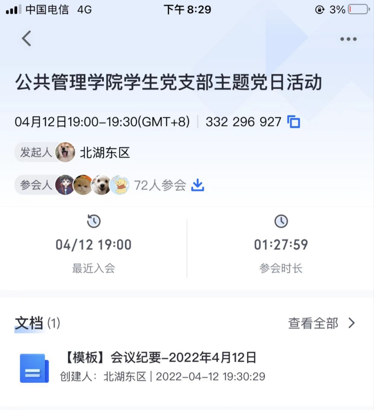 为深入贯彻落实习近平总书记重要讲话精神,进一步加强疫情期间学院党员学生思想引领工作,按照省、市、区疫情防控工作要求,结合我校工作实际,保障基层党组织战斗堡垒作用和党员先锋模范作用的切实发挥,2022年4月12日晚,公共管理学院学生党支部开展了主题为“抗疫一线树先锋,奉献时代担使命”的线上主题党日活动。会议由公共管理学院学生党支部书记毛静博主持,公共管理学院学生党支部全体成员参会。