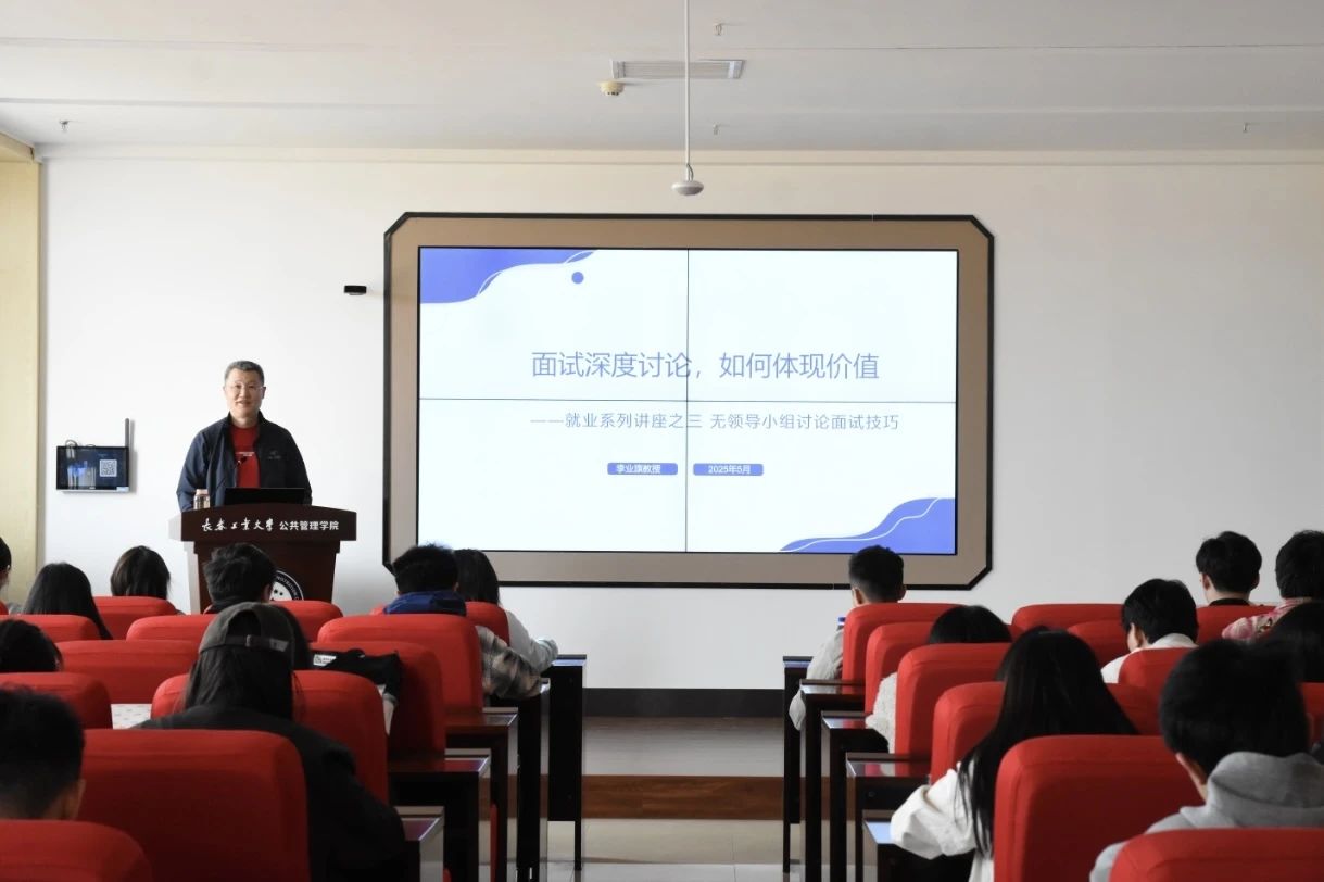 2025年5月7日,公共管理学院紧扣“我为高质量发展做什么”主题,行政管理和公共事业管理联合党支部李业旗教授于北湖东校区主楼301教室为beat3652022级和研究生党支部学生党员开展就业主题沙龙系列讲座(第二讲)。李业旗教授围绕结构化面试与无领导小组讨论两大核心模块展开专题指导,通过系统性教学与实战案例分析,切实提升学生就业竞争力,推动党建工作与就业指导深度融合。