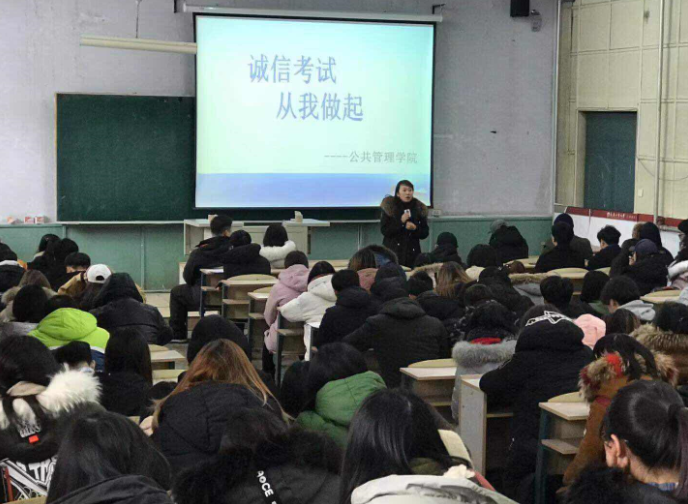 为使同学们在即将到来的期末考试中诚信应考、严守考风考纪,同时增强同学们假期安全防范意识,提高防范能力,确保每一位同学都能度过一个安全、愉快的寒假。学院在北湖林园两个校区分别召开了2018--2019学年第一学期期末考试诚信教育大会暨寒假安全教育会。会议由各年级辅导员分别主持。
