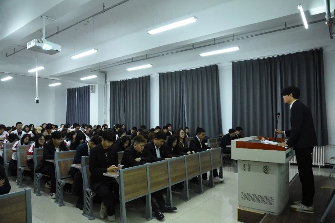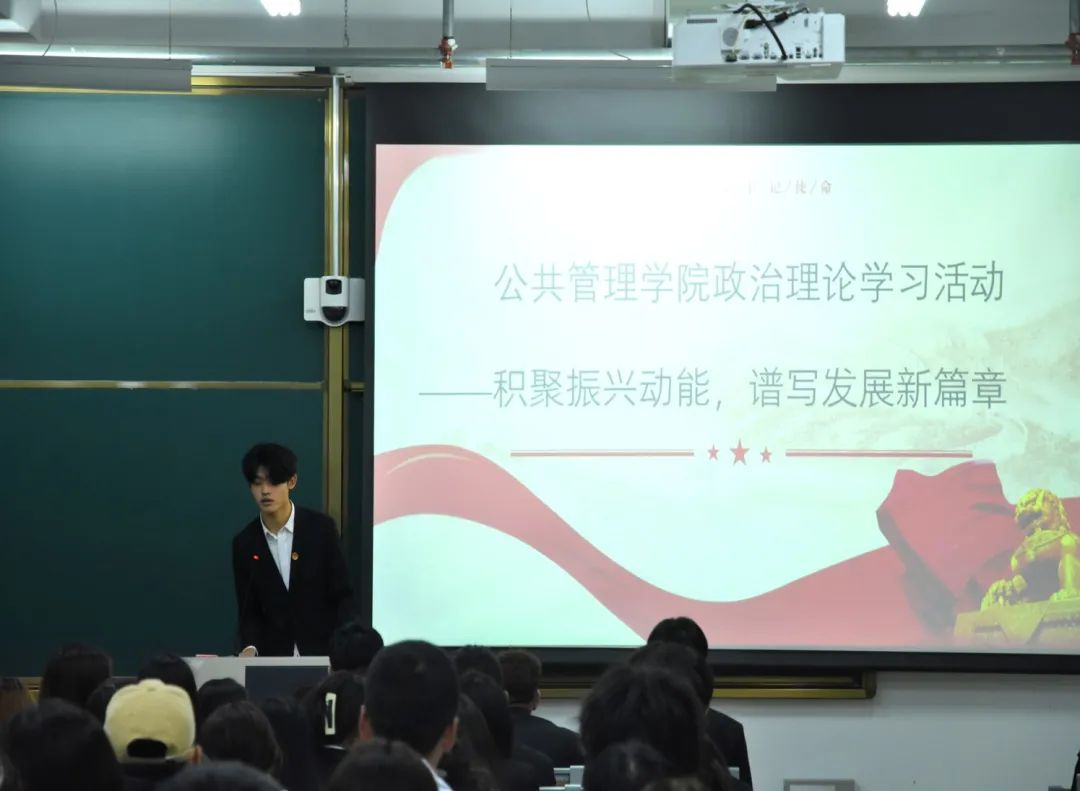 脚踏东北土地,关切东北全面振兴发展,为了深入学习贯彻习近平总书记关于东北全面振兴座谈会重要讲话精神,对东北振兴有更进一步的认识与了解,牢牢把握东北在维护国家“五大安全”中的重要使命,切实提高学生思想政治理论水平,努力培养堪当民族复兴重任的时代新人,公共管理学院理论自学组织于11月1日14点30分自发开展了第三次理论学习,本次理论学习在北湖东校区主楼101阶梯教室召开,参与本次学习的理论自学小组共计153人。本次理论学习由宣传部梁轩瑞领学。