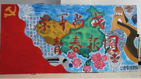 “崇军尚武 青春报国”——包含多种中国元素,例如“长城”、“中国地图”、“甲骨文”等等,展现出公管学子对祖国的热爱与忠诚。崇军尚武的精神能激励同学们在面对困难和挑战时,不轻易退缩,培养坚韧不拔、勇敢无畏的品质。在这一方小小的天地里熠熠生辉,激励着公管学子肩负对国家和社会的责任。当代年轻人应以报国为志,为祖国的繁荣富强而努力奋斗。