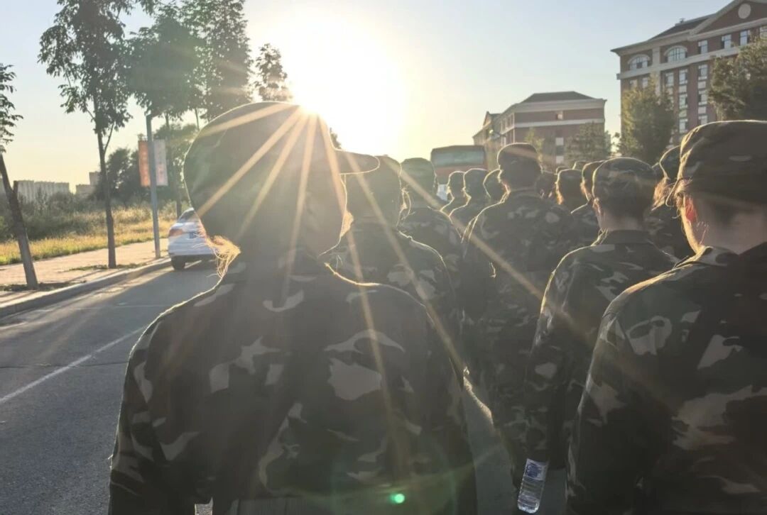 天刚蒙蒙亮,身着迷彩的新生们已在操场上集结。朝阳为他们的戎装镀上一层金辉,“军训十连”的红旗在风中猎猎作响。教官一声令下,立正、稍息、齐步走……一个个动作从生疏到整齐,晨光见证着他们的蜕变。
