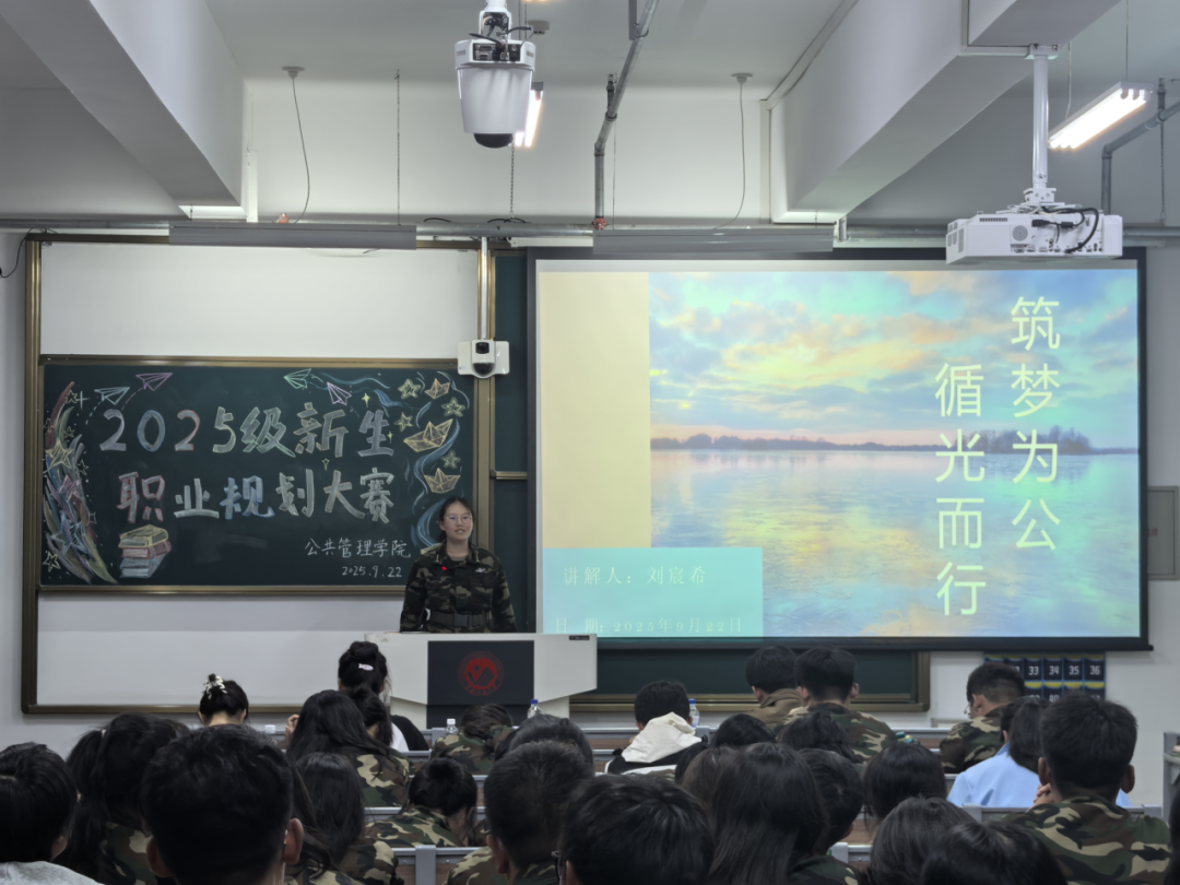 为搭建新生职业规划交流平台,助力2025级学子明确发展方向、建立清晰职业认知,以更坚定的目标开启大学生活,9月22日晚,公共管理学院于东区主楼201教室成功举办2025级新生职业生涯规划大赛。