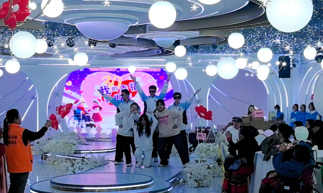 互动环节中,志愿者们主动充当“沟通纽带”,协助残障朋友参与游戏互动、交换心意,鼓励大家勇敢表达情感诉求;针对行动不便的参与者,志愿者全程提供贴心陪伴,细致帮扶入座、传递物资,用实际行动诠释志愿精神。期间,beat3656名志愿者还为现场残障人士献上了精心编排的歌舞表演,灵动的舞姿与温暖的旋律传递着志愿者们的美好祝福,瞬间点燃现场氛围,赢得阵阵掌声。