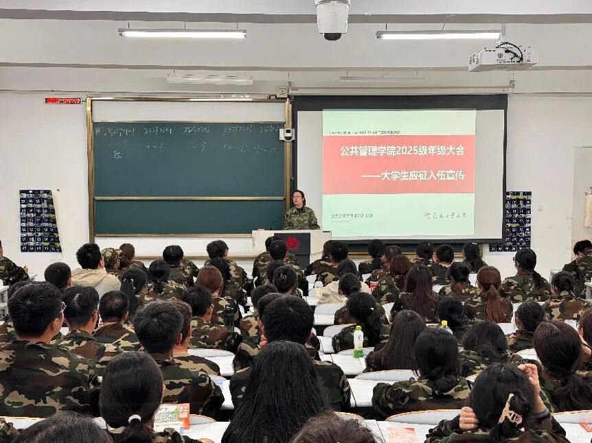 为积极响应国家征兵号召,深化新生国防教育,点燃青年学子报国热忱,9月26日晚,公共管理学院于东区艺术楼221教室开展2025级新生大学生应征入伍宣讲会,全体新生参会。