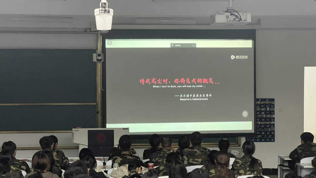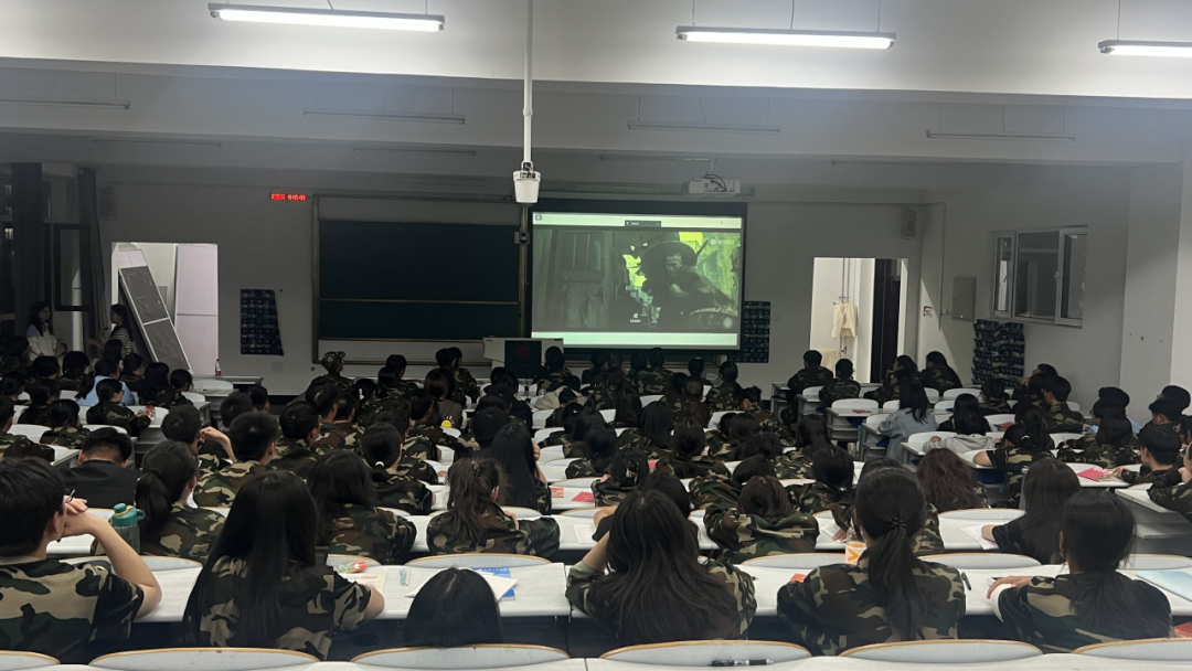 迷彩青春铸担当,红色光影忆忠魂。为深切缅怀抗战英烈,传承伟大抗战精神,9月25日晚,公共管理学院于北湖东区艺术楼221教室组织25级全体新生共同观看红色影片《八佰》。以光影为媒介,带领同学们回溯历史烽烟,感悟铁血军魂,在沉浸式观影中深植爱国情怀,凝聚军训奋进力量。