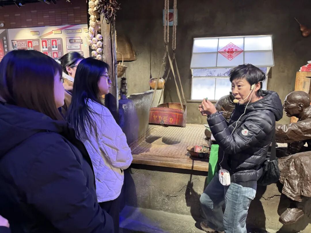 走进马鞍山主题展馆,馆内文字介绍、老照片、实物展品及多媒体影像等多种形式,生动再现了村庄从寻常村落蜕变为“全国脱贫攻坚先进集体”和乡村振兴示范村的非凡历程。这里不仅是展示发展成就的窗口,更是一座浸润着东北革命历史的爱国主义教育基地。同学们认真聆听讲解、积极提问,深入了解当地在生态守护、农文旅融合和特色产业培育等方面的创新实践,直观感受到“红色传承+文化滋养+治理保障”发展模式如何激活乡村内生动力。在参观交流中,同学们进一步感受到马鞍山村在脱贫攻坚中的独特路径和宝贵经验,也更深入领会了乡村振兴的实践规律及其时代价值。