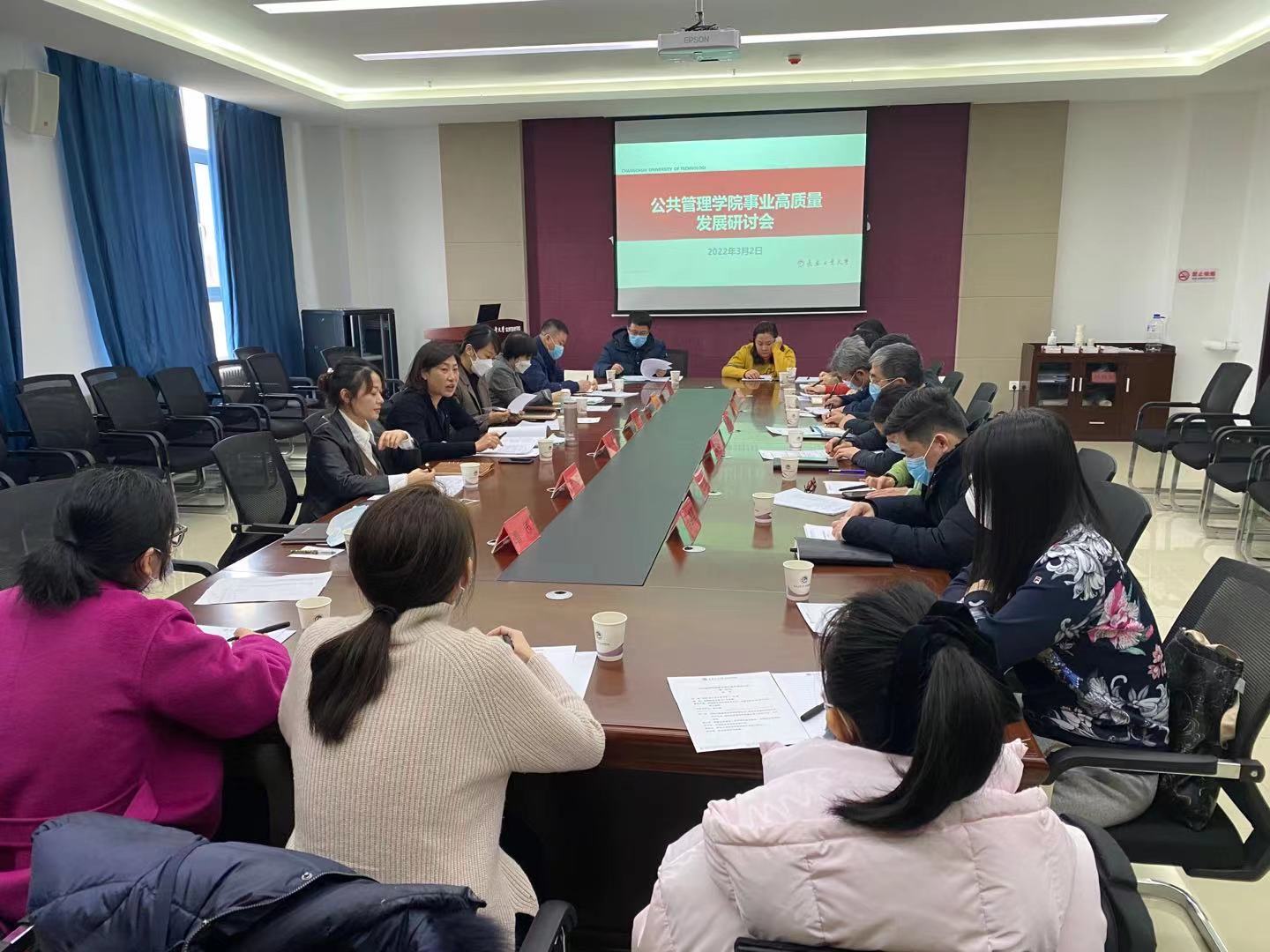 围绕学校第四次党代会提出的目标任务,为深入学习贯彻学校召开的推动事业高质量发展工作研讨会的会议精神,学院于3月2日13:30召开了公共管理学院事业高质量发展研讨会。学院领导班子成员及各系主任、支部书记及40岁以下的青年博士教师参加了会议。为高质量开好此次研讨会,学院党委高度重视,进行了周密部署和精心组织,反复讨论确定了研讨调研主题。会前,学院班子召开专门会议进行了集中研讨,谋划推进学院高质量发展的思路和举措,为开好研讨会作了充分准备。此次研讨会持续5个小时,分为专题报告、分组研讨、总结汇报三个阶段进行,会议由韩小威院长主持。