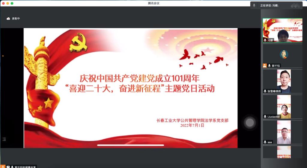 为庆祝中国共产党成立101周年,庆祝中国香港特别行政区回归祖国25周年,引导党员坚定理想信念,厚植爱党爱国情怀,激发广大党员的使命感和责任感,7月1日,公共管理学院党委组织各党支部开展了“庆祝中国共产党成立101周年”主题党日活动。