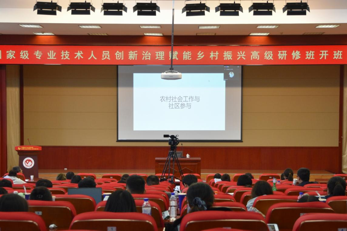 本网讯(通讯员 汤道化)10月17日下午,国家级专业技术人员“创新治理赋能乡村振兴”高级研修班活动在我校南湖校区学术报告厅继续进行。第六场主讲嘉宾特邀南开大学郑广怀教授,他为学员们作了题为“农村社会工作与社区参与”的线上讲座。公共管理学院副院长汤道化主持讲座。学院党委书记于洪、院长韩小威教授、副院长冯娜副教授及百余名师生、学员参加讲座。