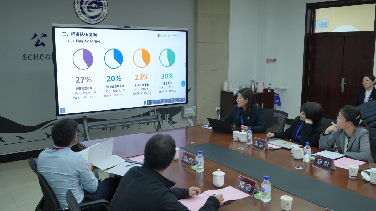 公共管理学院院长韩小威教授汇报了学院学科设置与人才培养总体情况,请专家针对学科融合发展等问题提出建议。