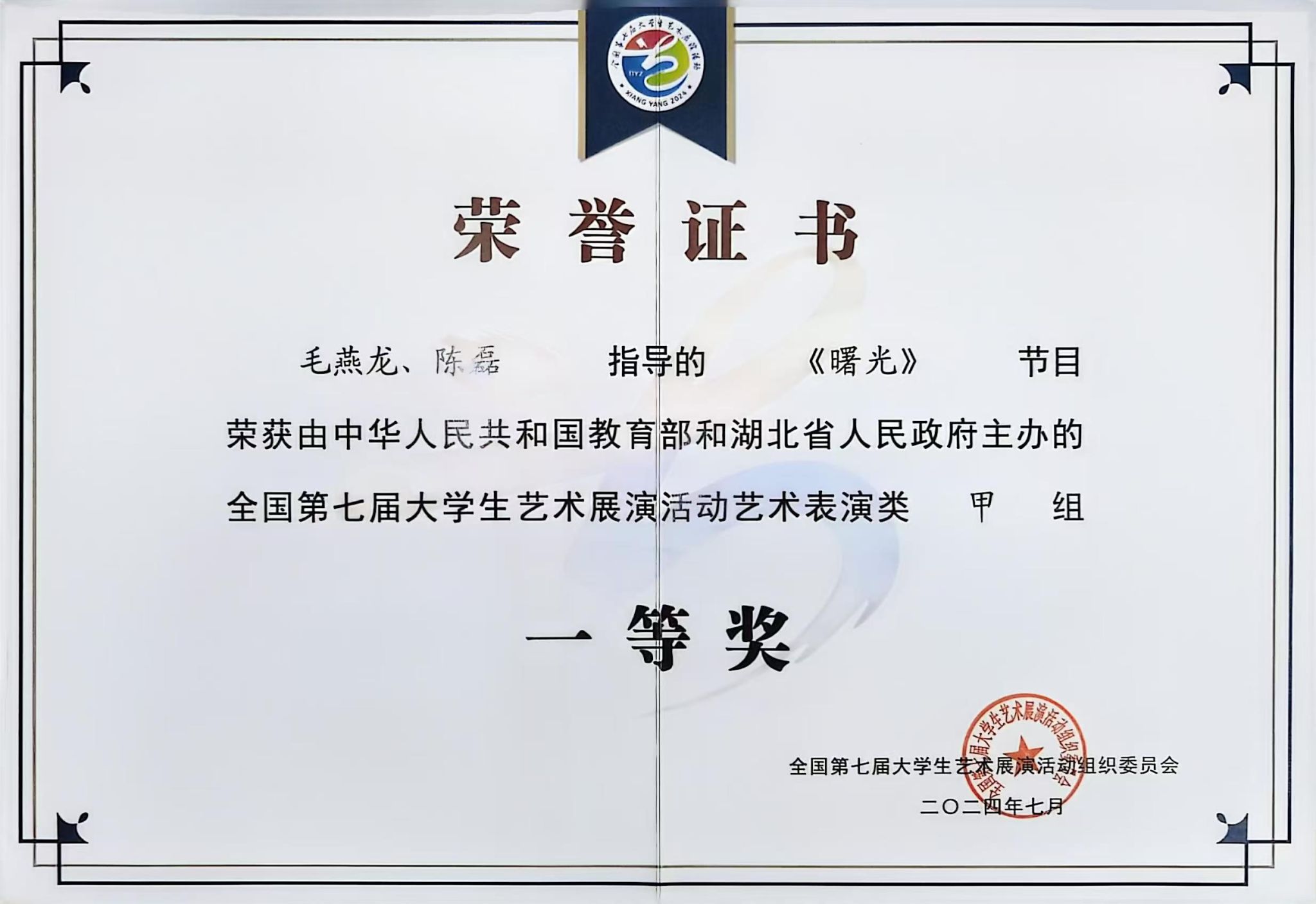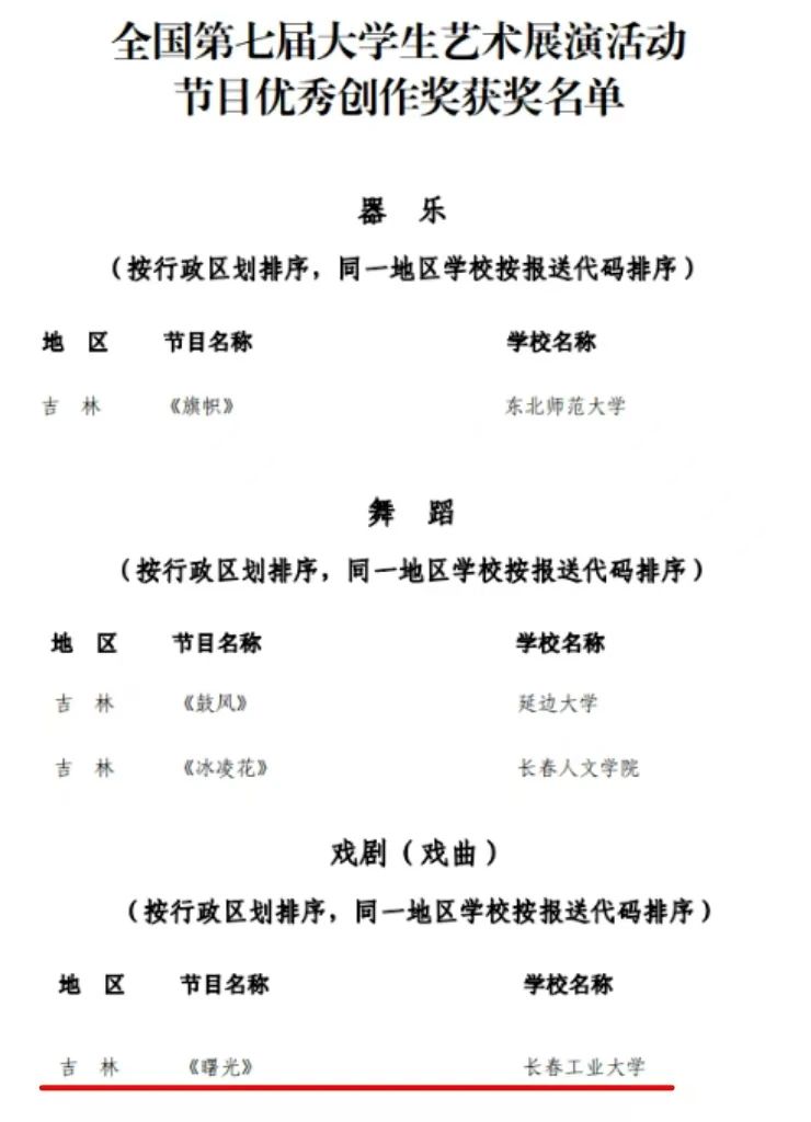 近日,教育部印发通知,公布全国第七届大学生艺术展演活动优秀组织奖及各项目评选结果。其中beat365原创情景剧《曙光》荣获全国第七届大学生艺术展演活动艺术表演类集体节目——戏曲(戏剧)一等奖。