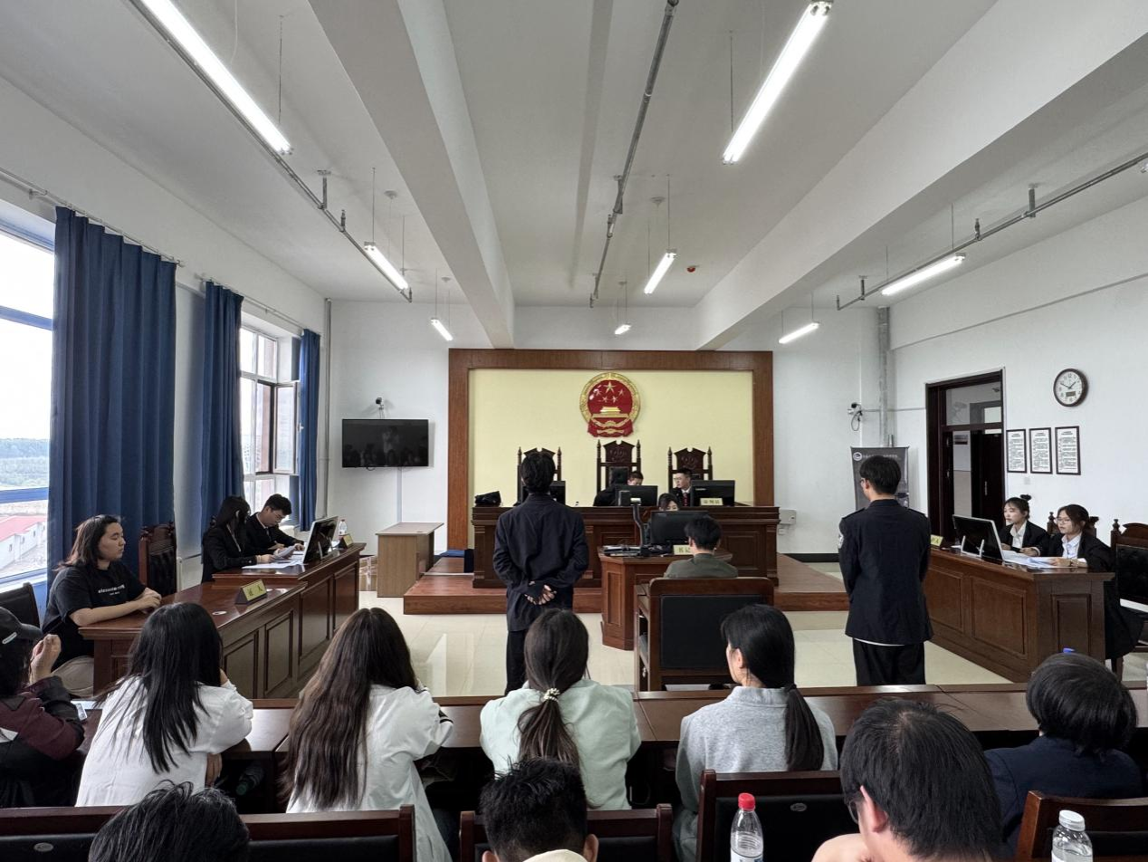 本网讯(通讯员 邢嘉倪)为深化法学实践教育,厚植法治信仰,公共管理学院联合吉林瀛庆律师事务所于2025年5月22日举办“法槌之声 律学共鸣”高校律所模拟法庭实战活动。活动特邀吉林瀛庆律师事务所田泽众、张扬、林成律师担任审判人员,与学院法学系24级学生共同还原真实庭审现场,以“实战+思辨”助力青年法学生成长。梁轩阁、邱帅、赵宁律师、法学系主任宋浩老师作为嘉宾出席活动。活动由学院副院长冯娜老师主持。