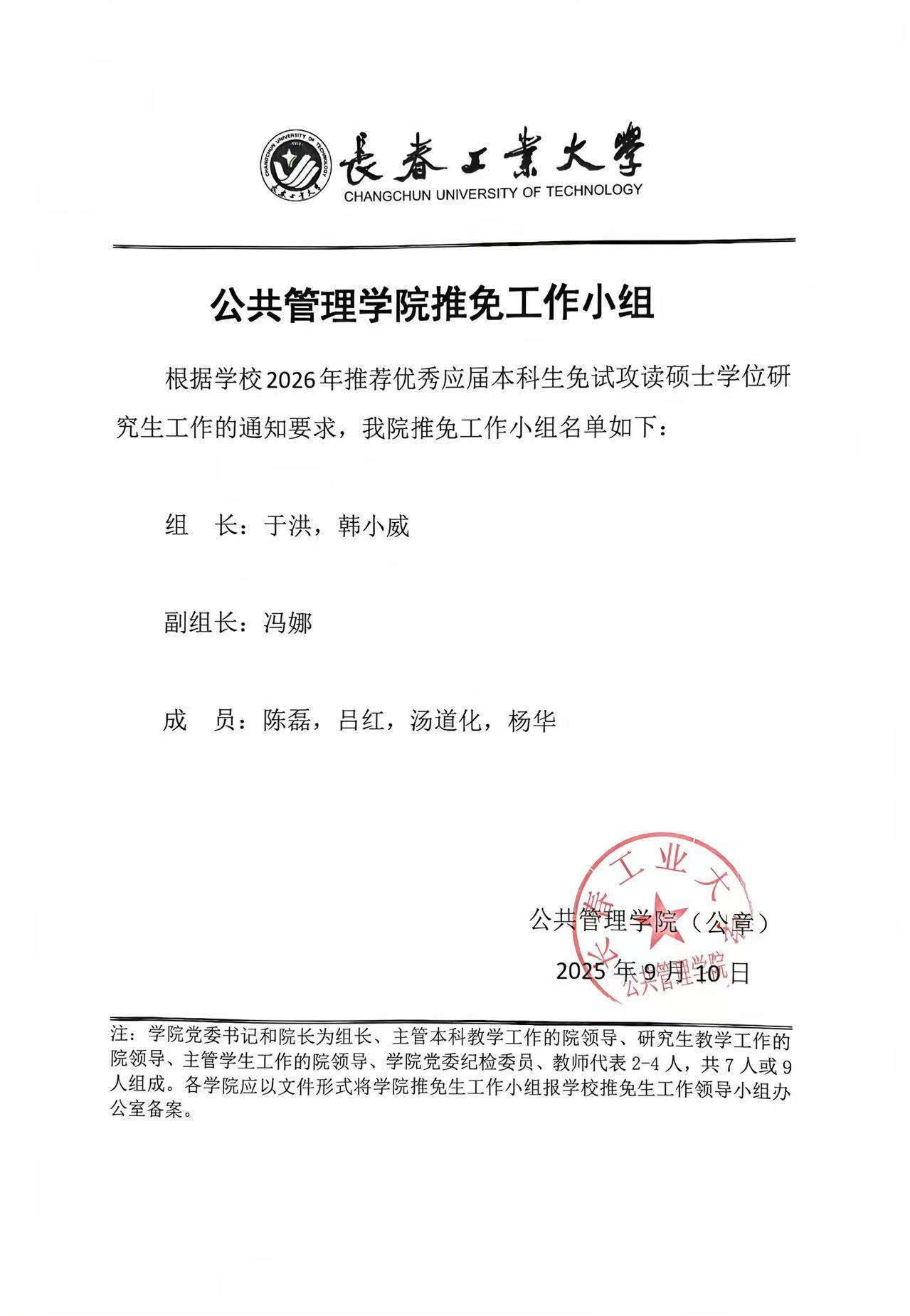 公共管理学院推免工作小组